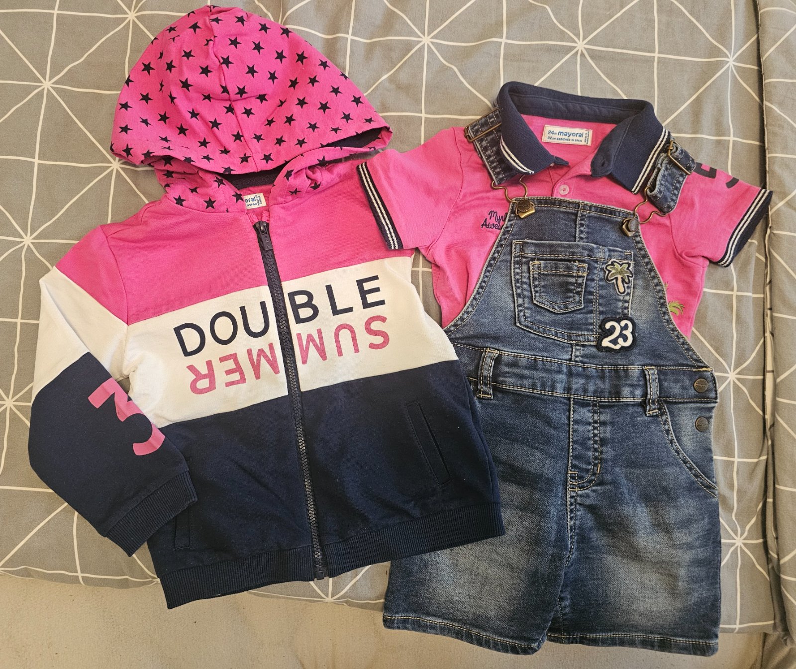 Predám krásnu súpravu Mayoral raz oblečenú. Veľkosť 86/92 .Pôvodne 18 eur a 24,50.