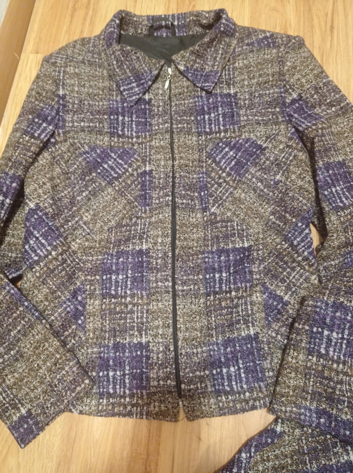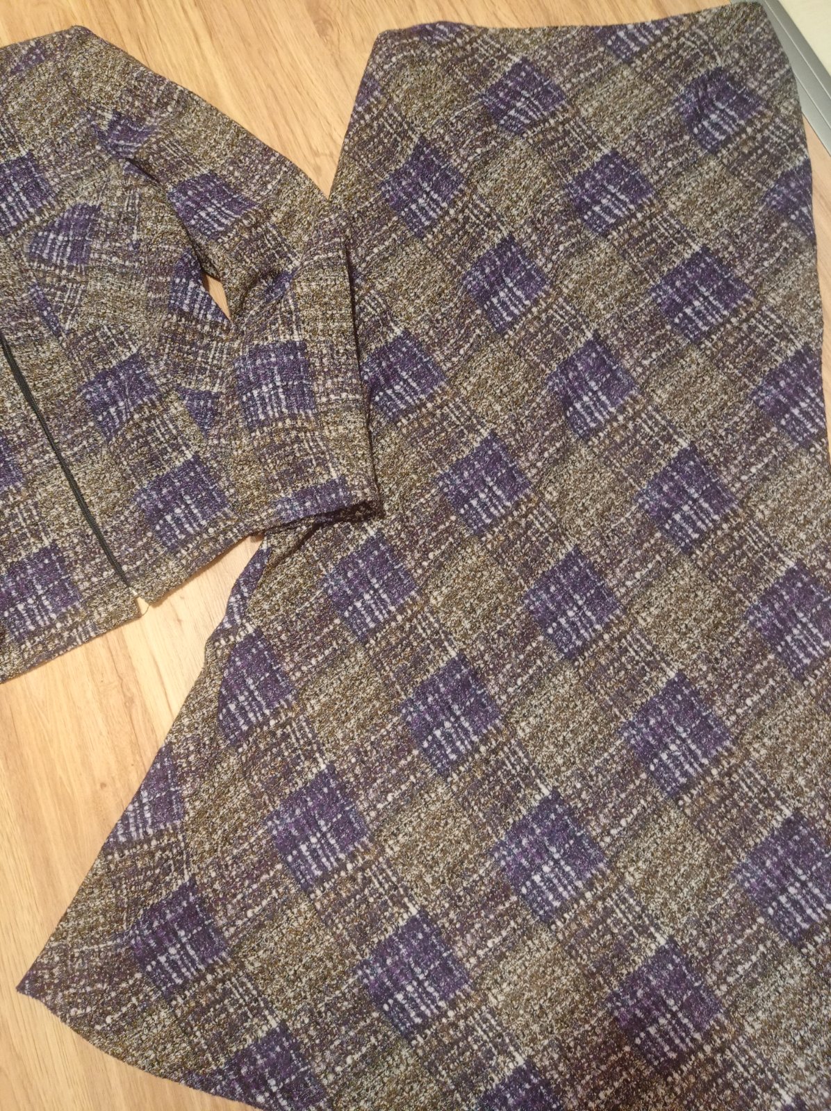 Sako a sukna, ako nove, nema ani zmolky. Kvalitny material. Sako: dlzka,:57, rukav od krku:68 cm, sirka: 43, sukna: dlzka:93 cm, pas vzadu zips: 36 cm.