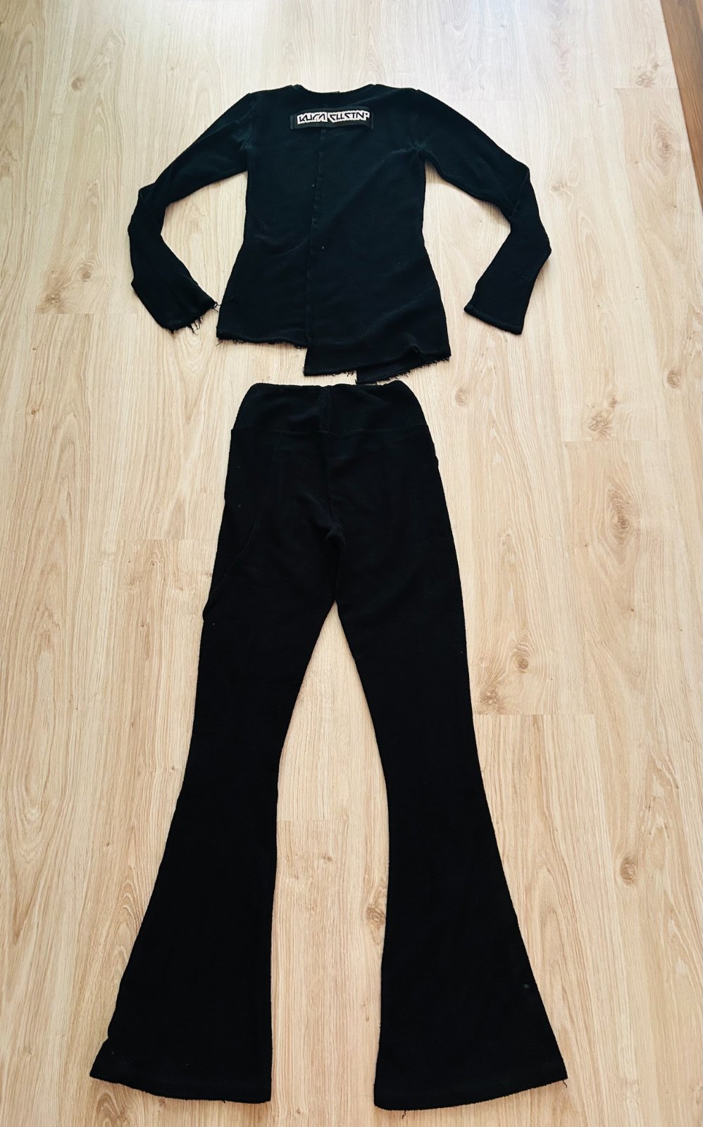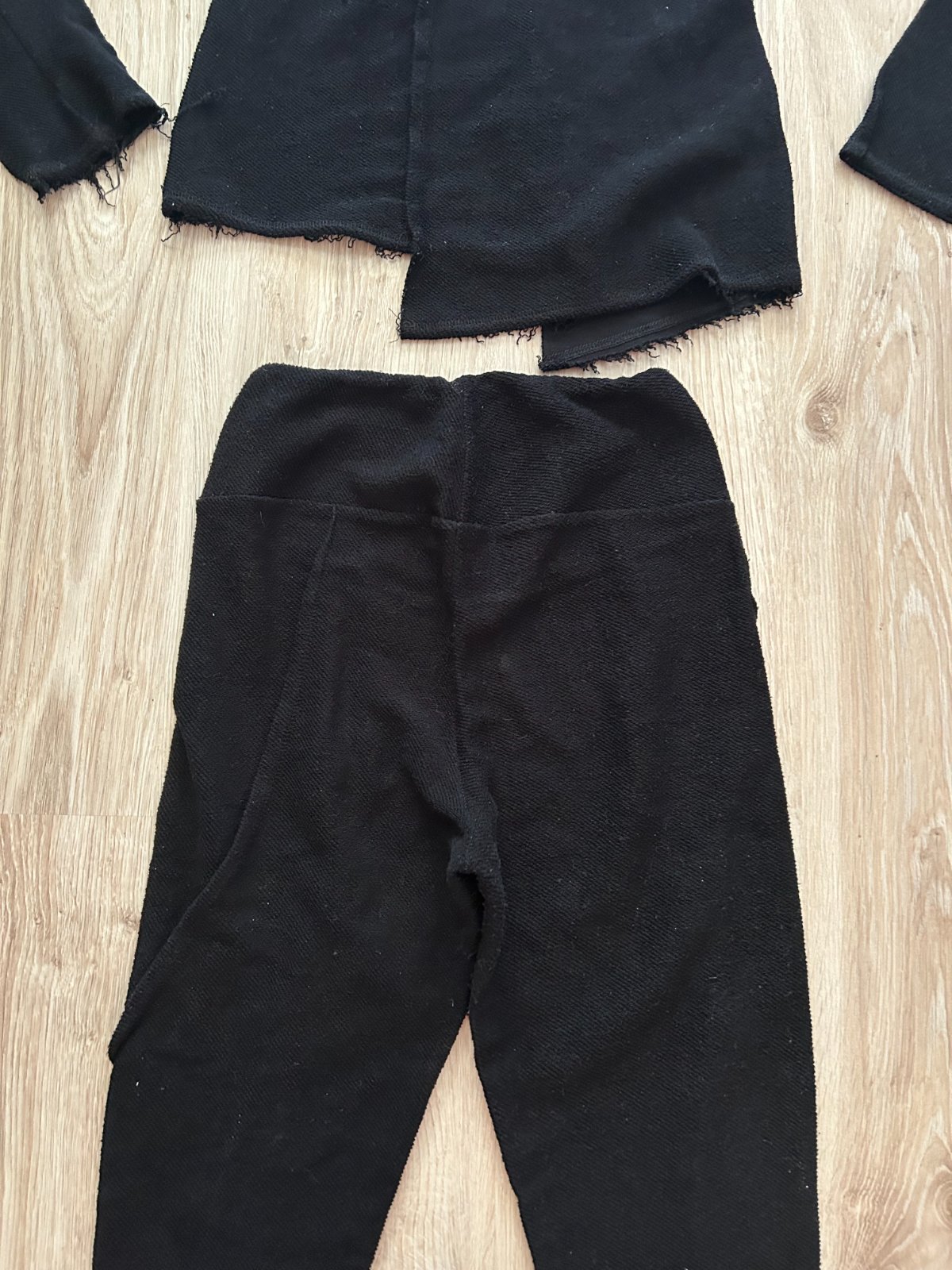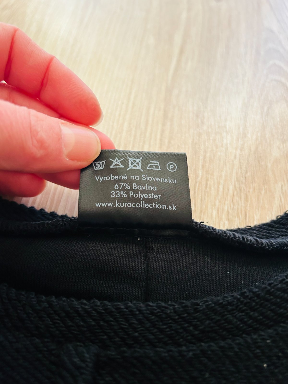 Predám tento krásny komplet slovenskej značky KURA COLLECTION v univerzálnej veľkosti, sedí na XS, S a M. Pôvodne stál 179 EUR. Farba je čierna, je to ten istý komplet ako na úvodnej fotke, len v čiernej farbe, pridala som kvôli predstave ako vyzerá oblečený. Je teplejší, vhodný na prechodné a zimné obdobie. Oblečený bol len párkrát, na pár miestach žmolky, ktoré by sa mohli dať odžmolkovať, všetko som nafotila, nič strašné. Vyrobené na Slovensku. Materiálové zloženie: 67% bavlna, 33% polyester.