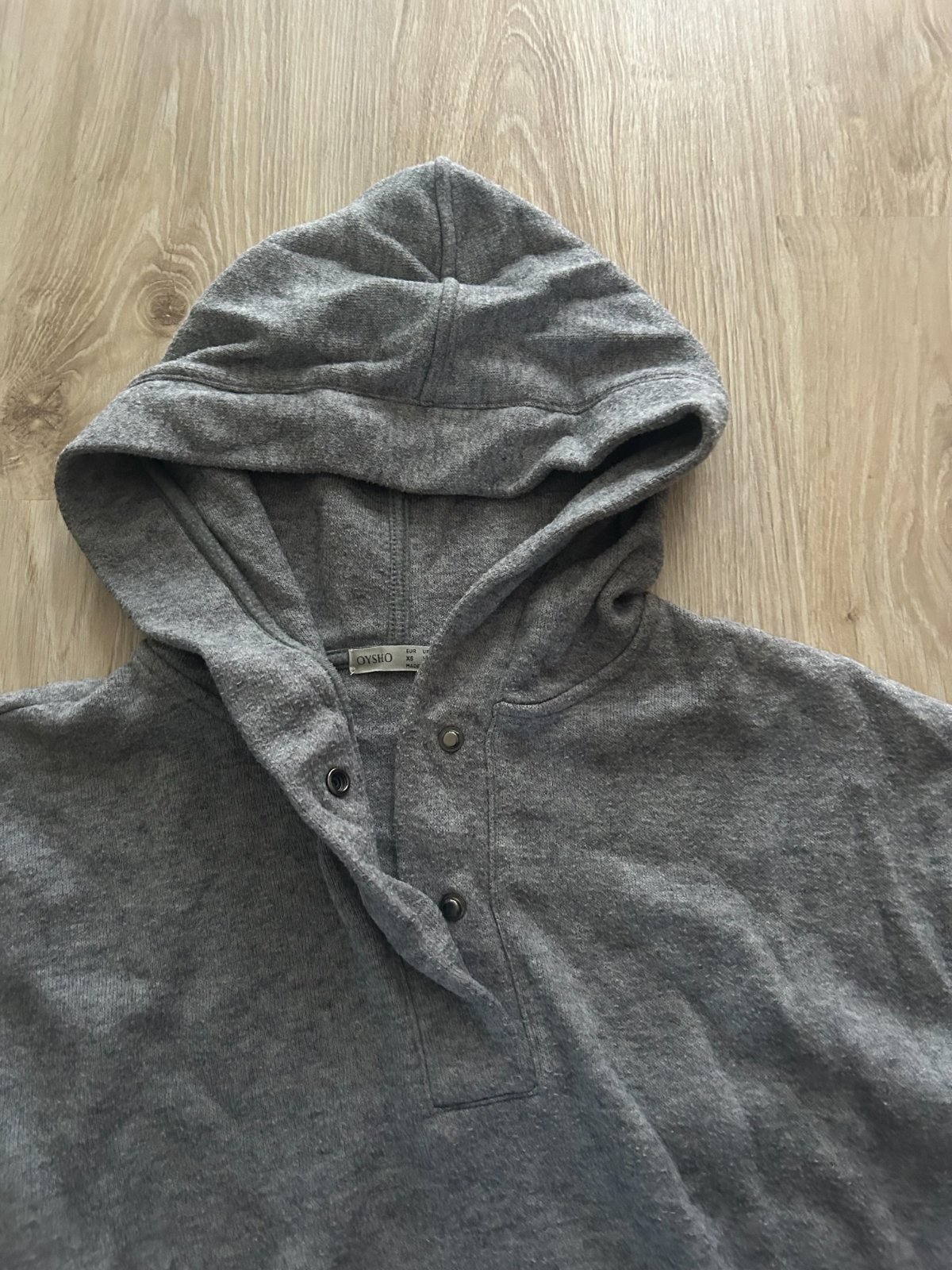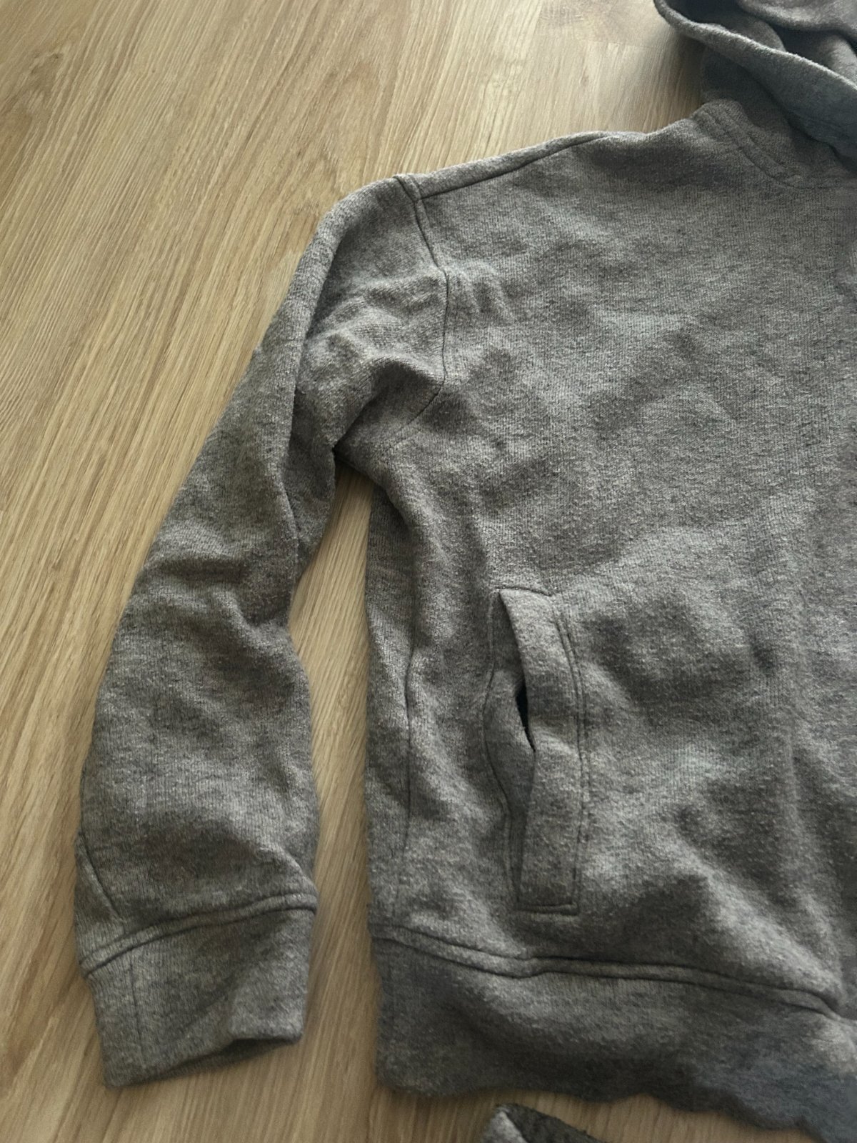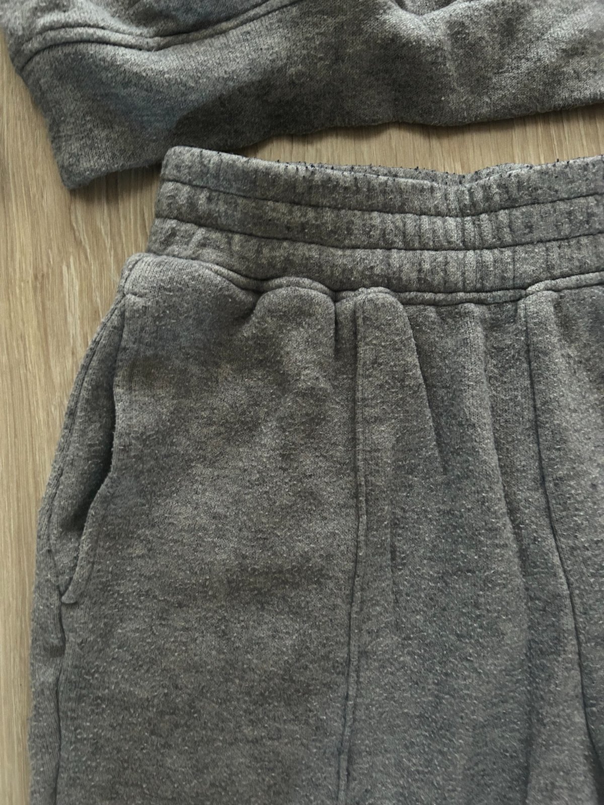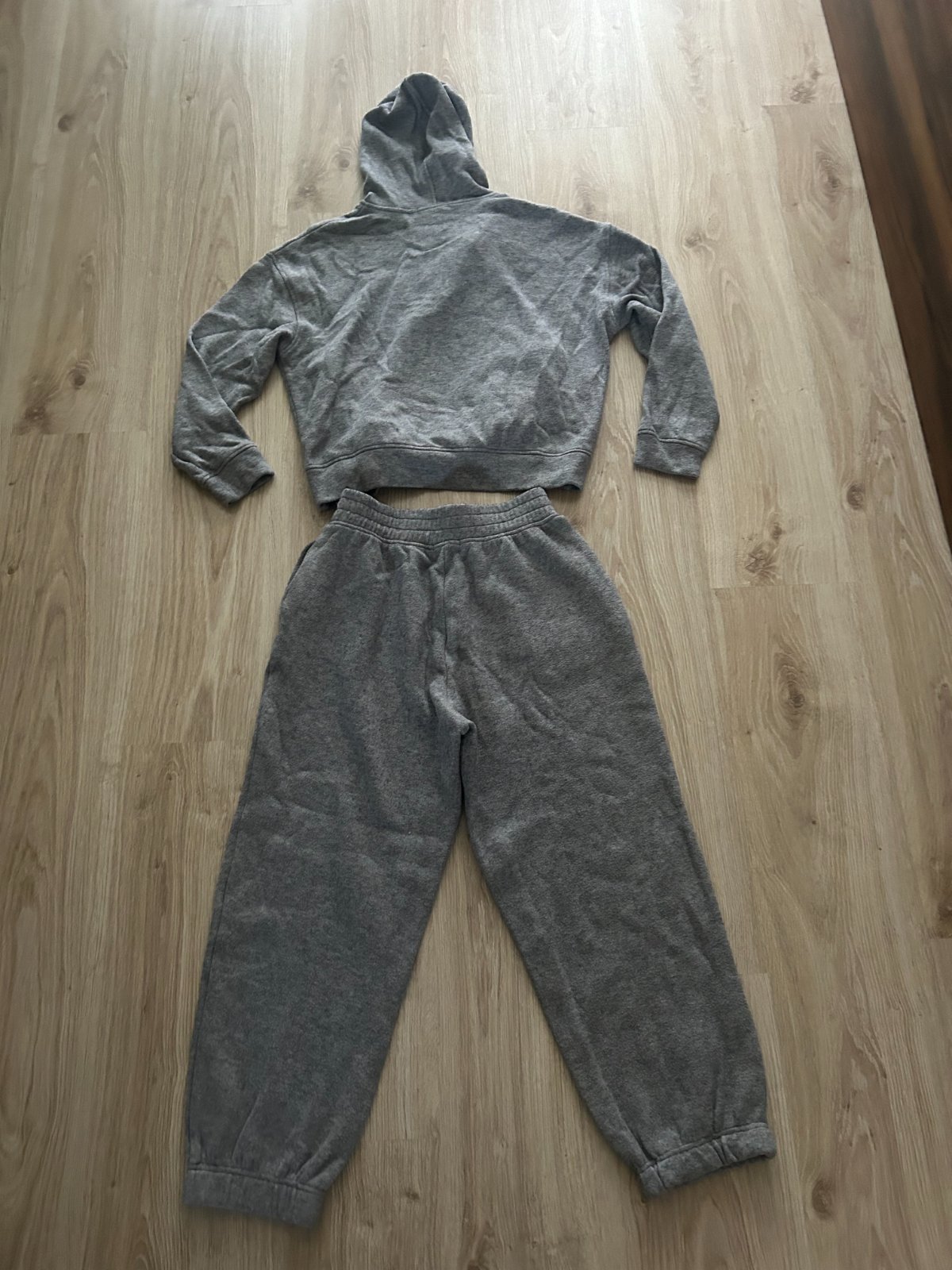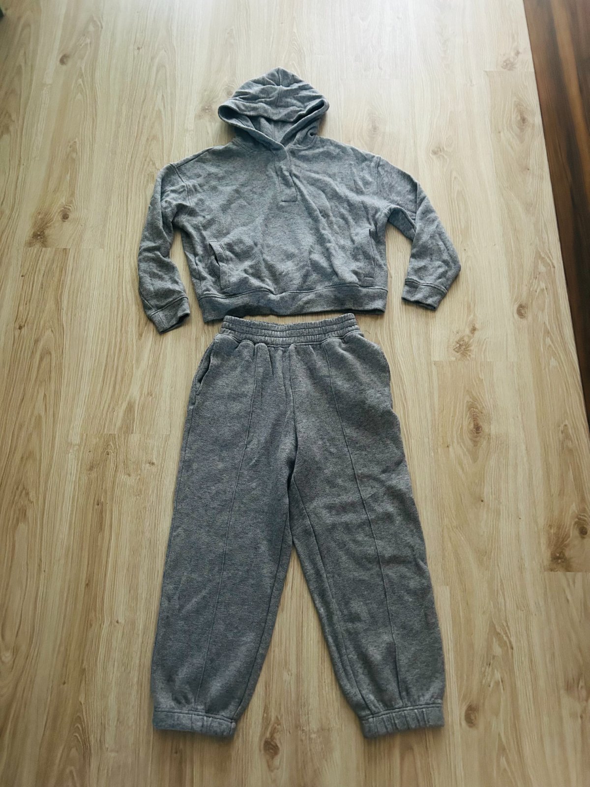 Predám túto štýlovú teplákovú súpravu značky OYSHO. Komplet pozostáva z mikiny vo veľkosti XS a teplákov vo veľkosti S. Je to taký teplejší teplákový materiál, farba je sivá. Mikina má klokanie vrecká, kapucňu a hore zapínanie na patenty. Tepláky majú v páse gumu, takže sa prispôsobia. Nosené na striedačku s inými kompletmi, miestami majú žmolky, ktoré sa dajú odžmolkovať.
