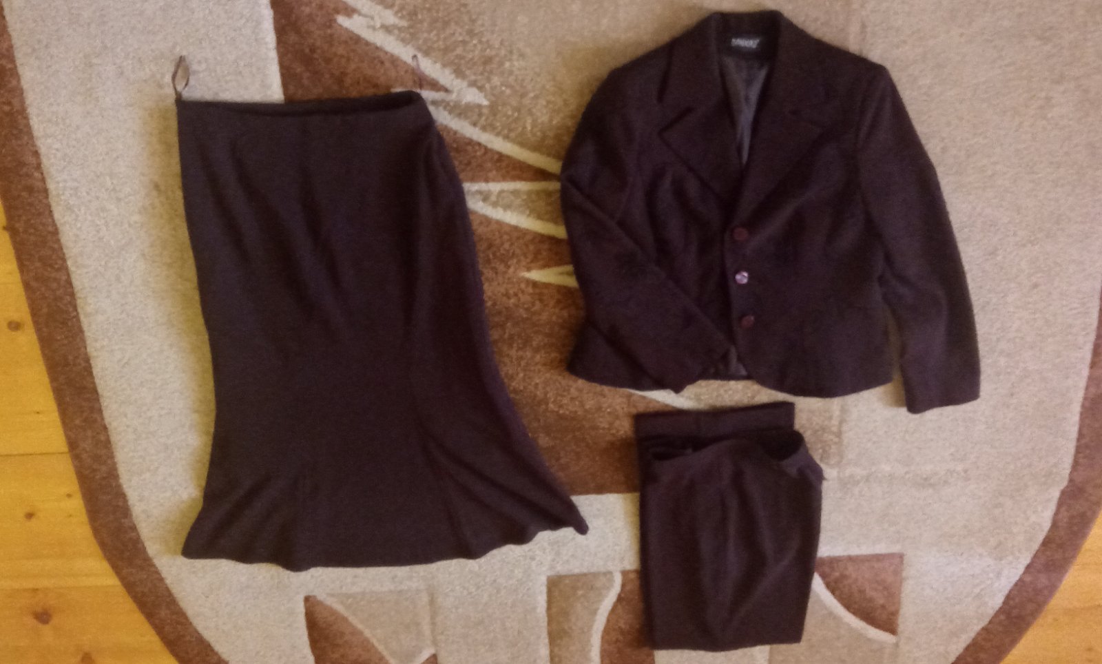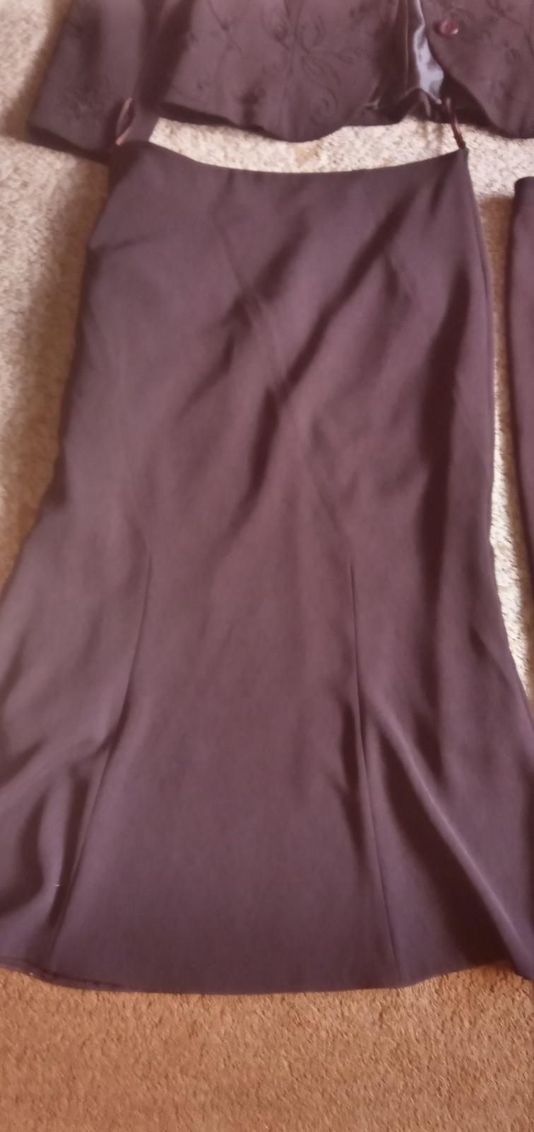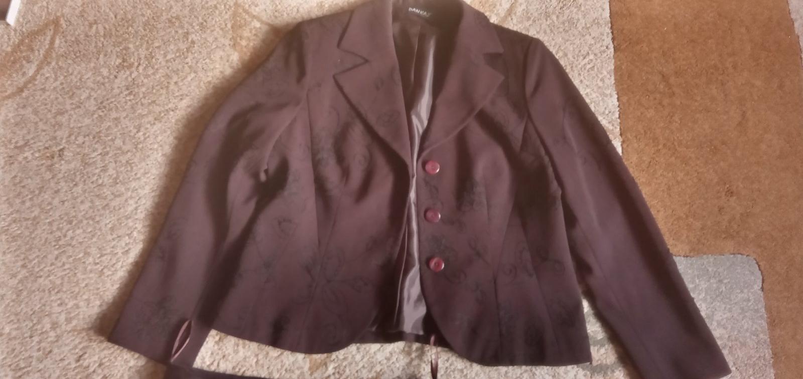 posuvam kostym 3 kombinacia, sako +sukna+nohavice, nosene ale v dobrom stave, premerajte, sako je velmi pekne zaujmave,ma po sebe taky vysivany vzor-vid foto-sako-dlzka 61cm, ramena 42cm rukav 60cm, sirka .p.p.52cm. sukna-pas 2x41cm, dlzka 89cm, nohavice-dlzka 100cm, pas 2x41cm, zapinanie na gombik aj zips