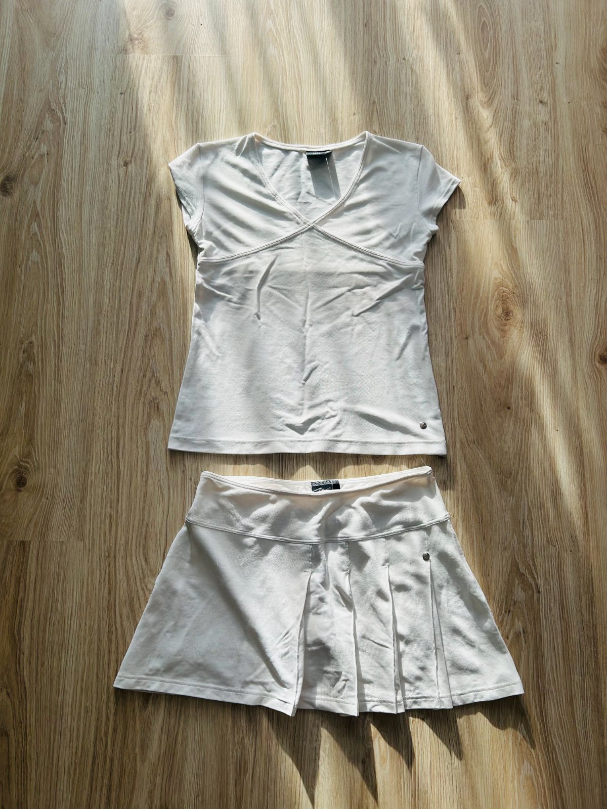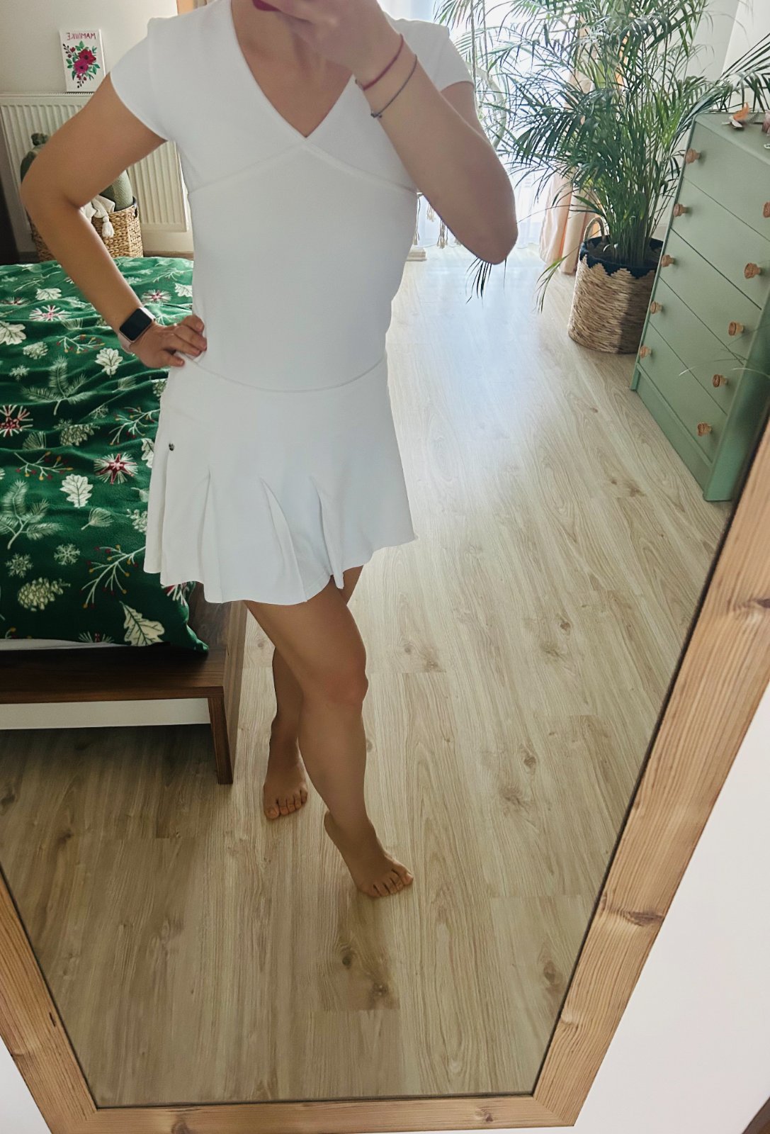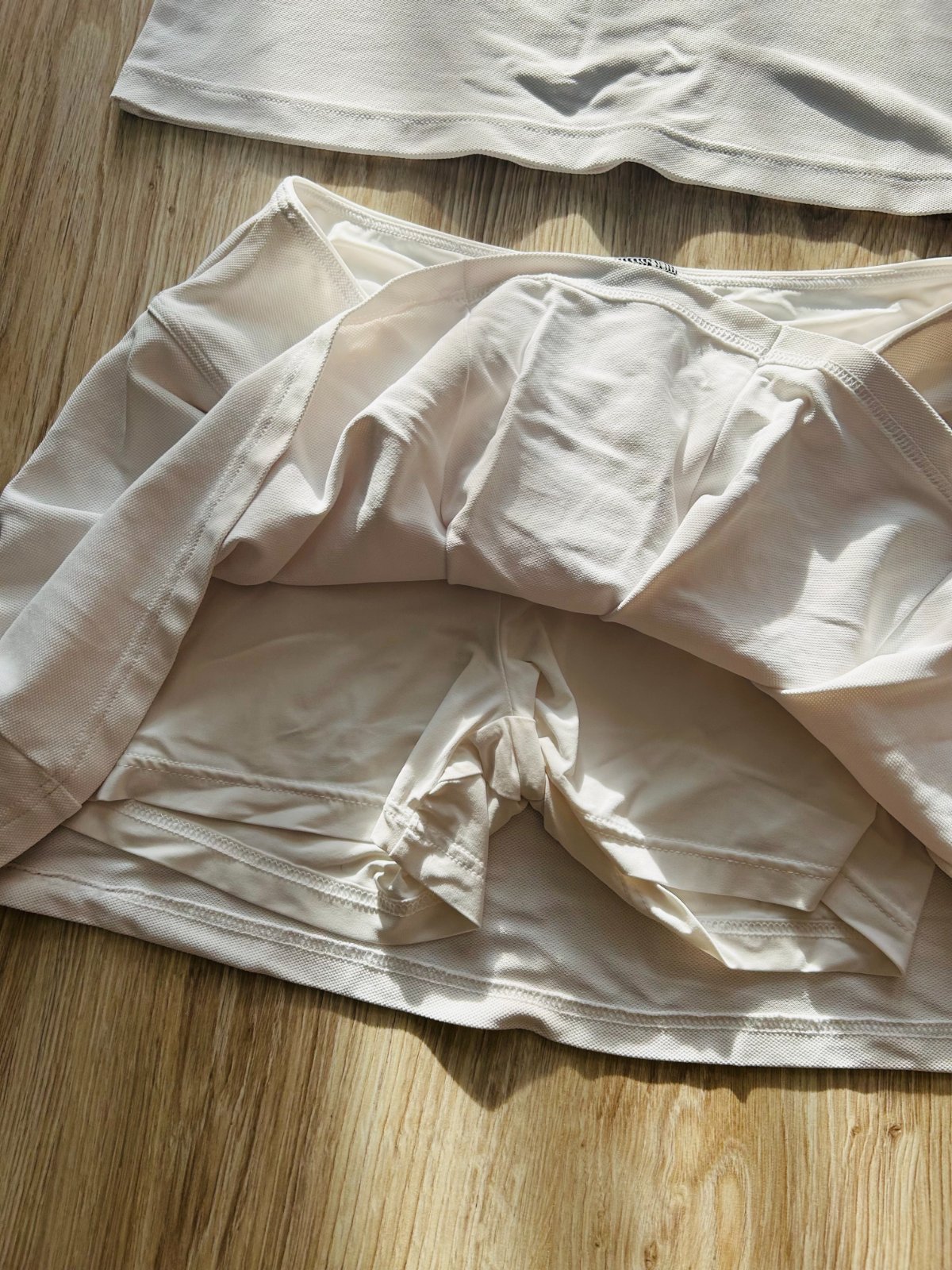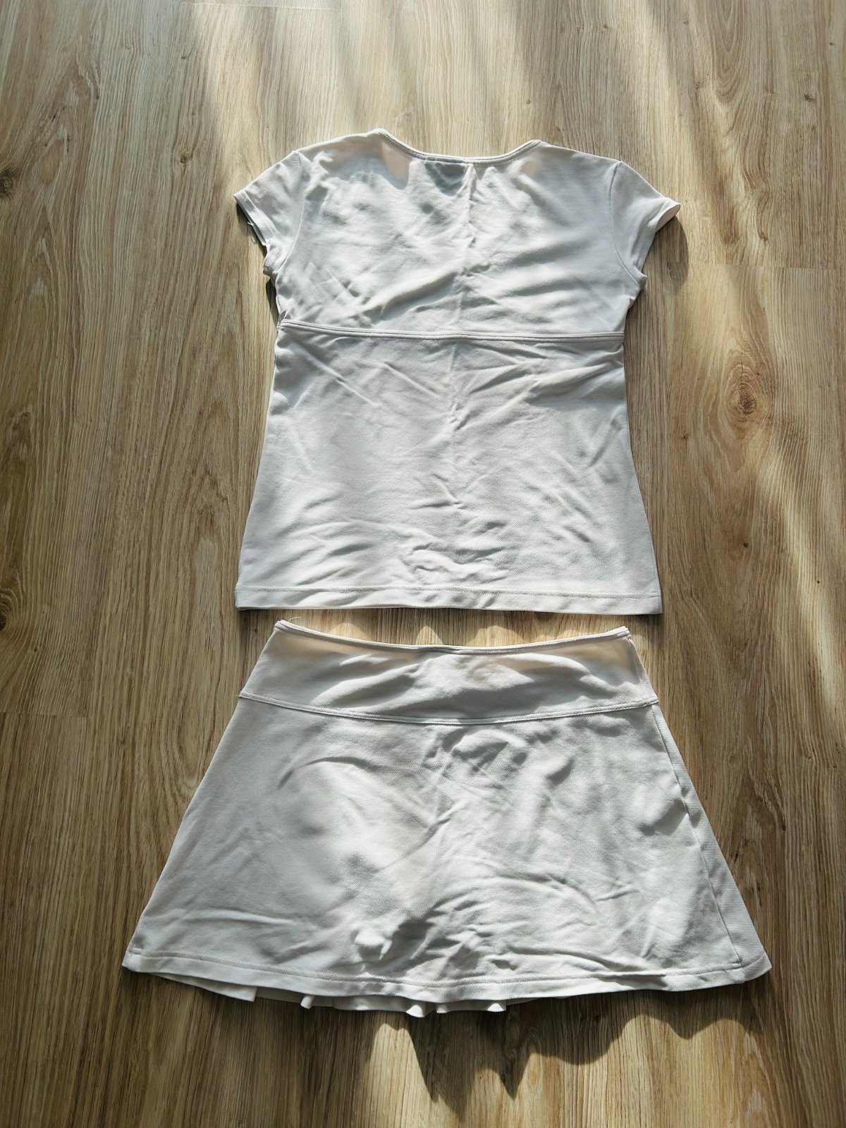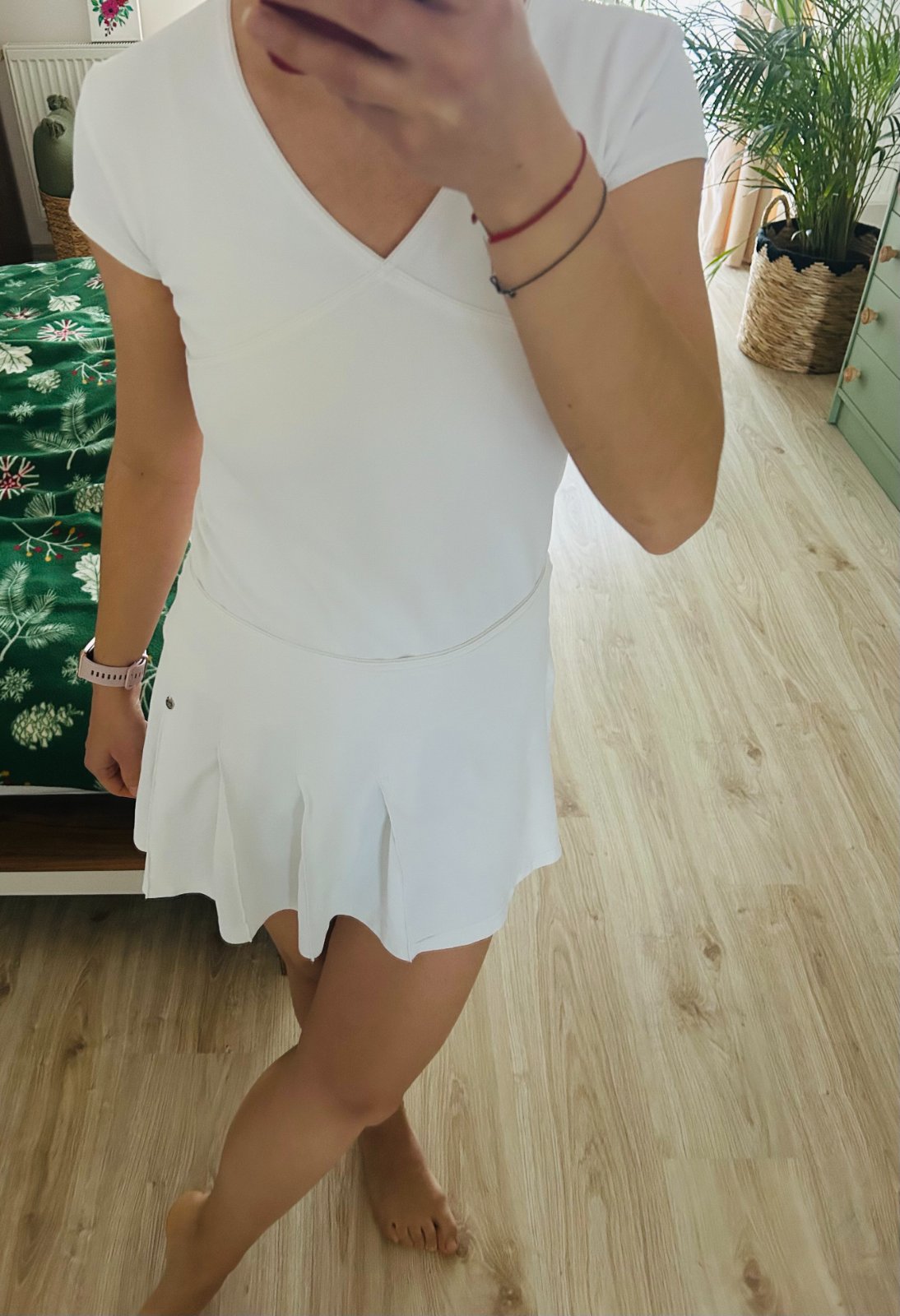 Predám túto krásnu súpravu značky CASALL vo veľkosti M. Pôvodná cena bola 80 EUR. Nosená bola príležitostne na tenis. Komplet pozostáva z trička a zo skortu - skladanej sukne podšitej šortkami. Komplet je ideálny nielen na športové aktivity, ale aj na bežné nosenie.