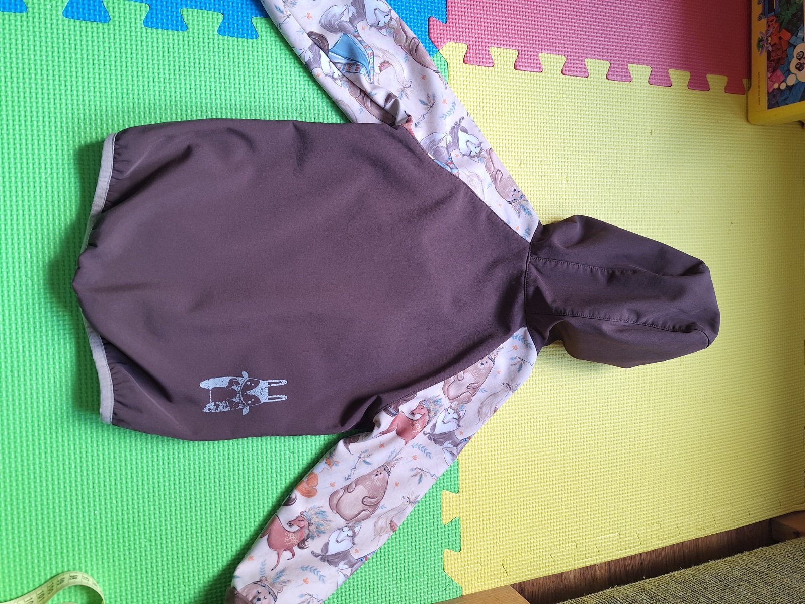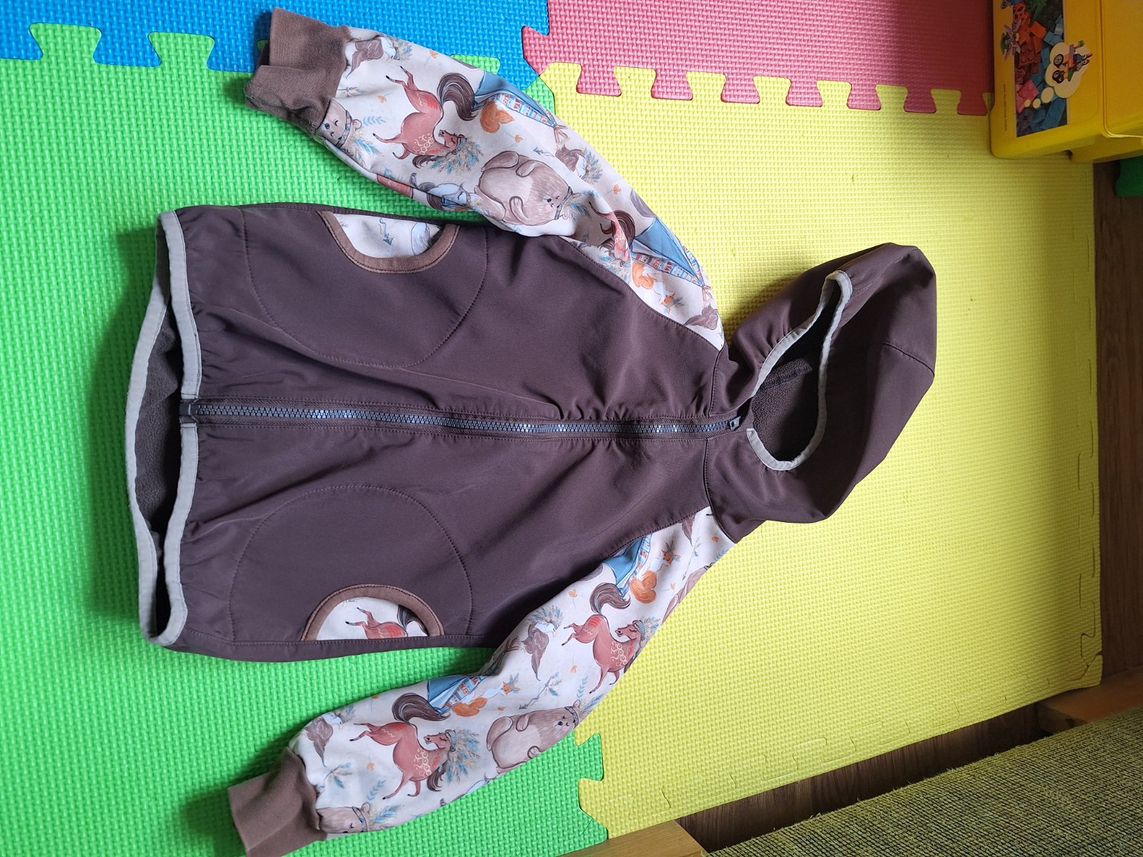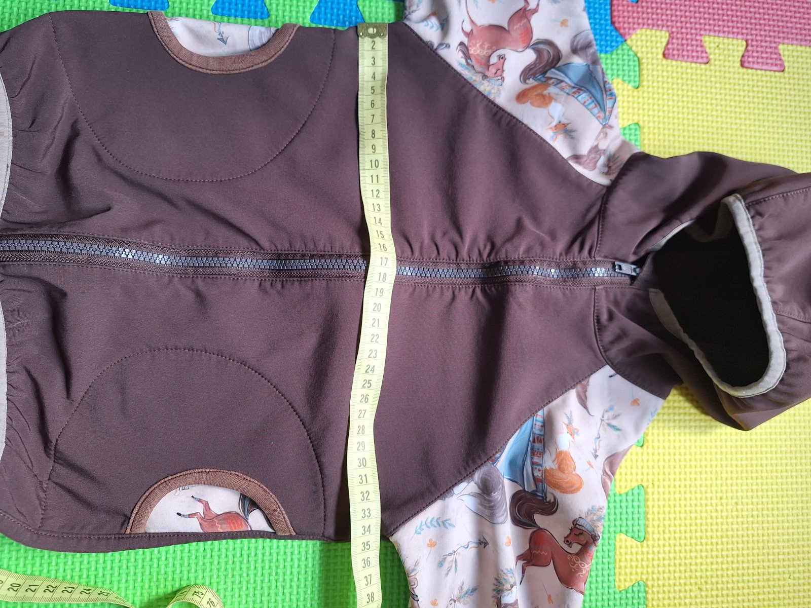 Predám softshellovú súpravu, kupovanú na MK. Je to handemade výrobok, veľkosť orientačne 98/104. Syn ju nosil od veľkosti 92. Výborne sa nosí, nohavice majú vysoký pás, chrbátik je tak v teple, bunda má predĺžený chrbátik. Patenty okolo rukávov sú prešúchané nosením, všetko vidno na fotkách.