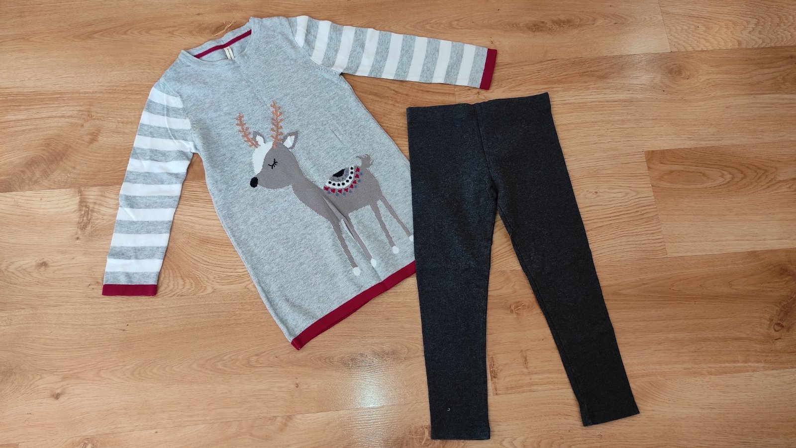 Ponúkam na predaj krásne veci ku pre dievčatko do škôlky alebo na bežné nosenie. Upletovevsaty / tunika jemnucke, v bezchybnom stave, zo 3x oblečené, k nim leginky, nosené ale bez akýchkoľvek poškodení. Veľkostne 110-116. Cena 12 eur.