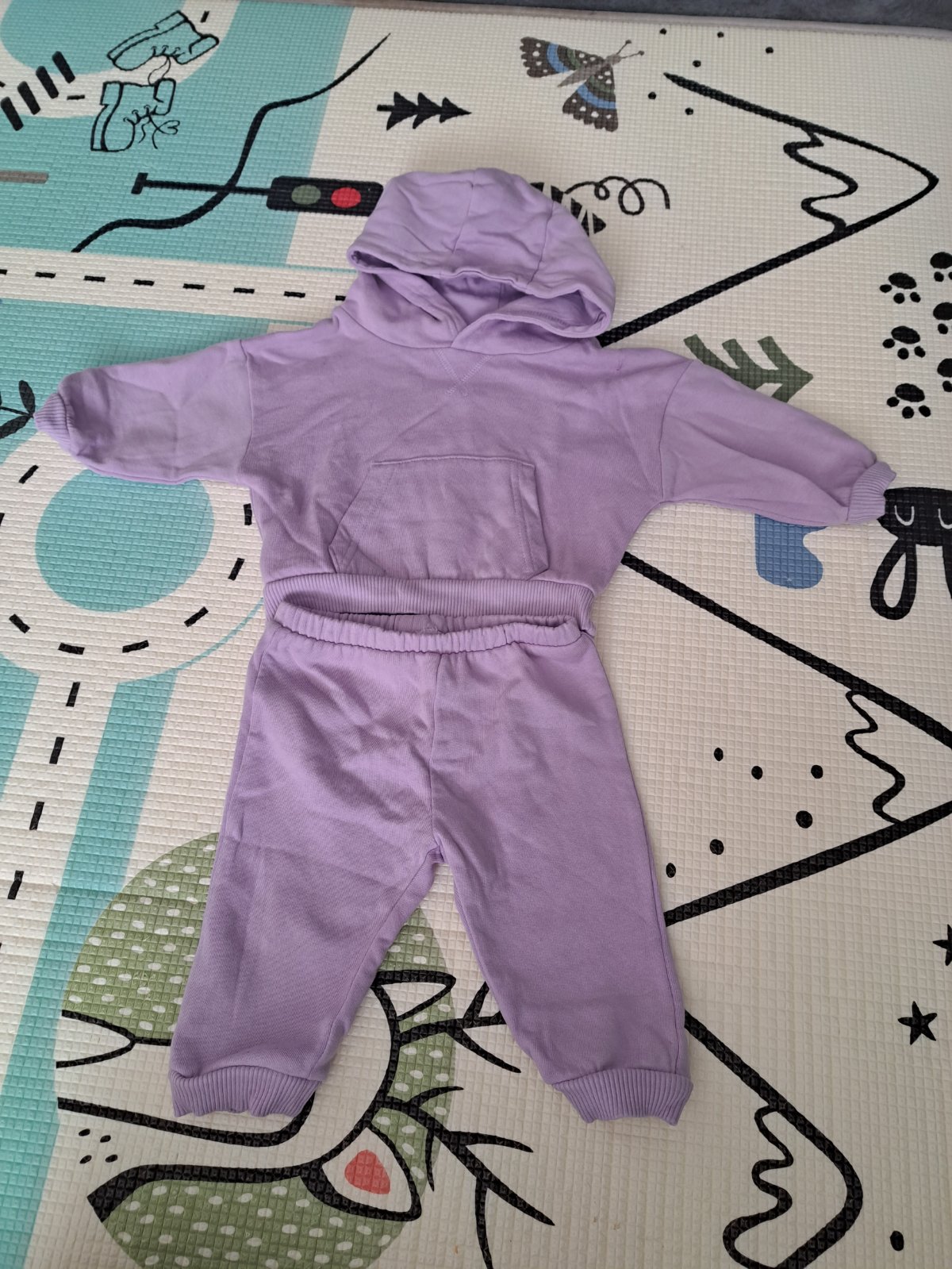 Peknučká teplačková súprava máličko nosené,je semišová je fakt krásne.Je to tak 68 -74velkost ale skôr niečo medzi.
