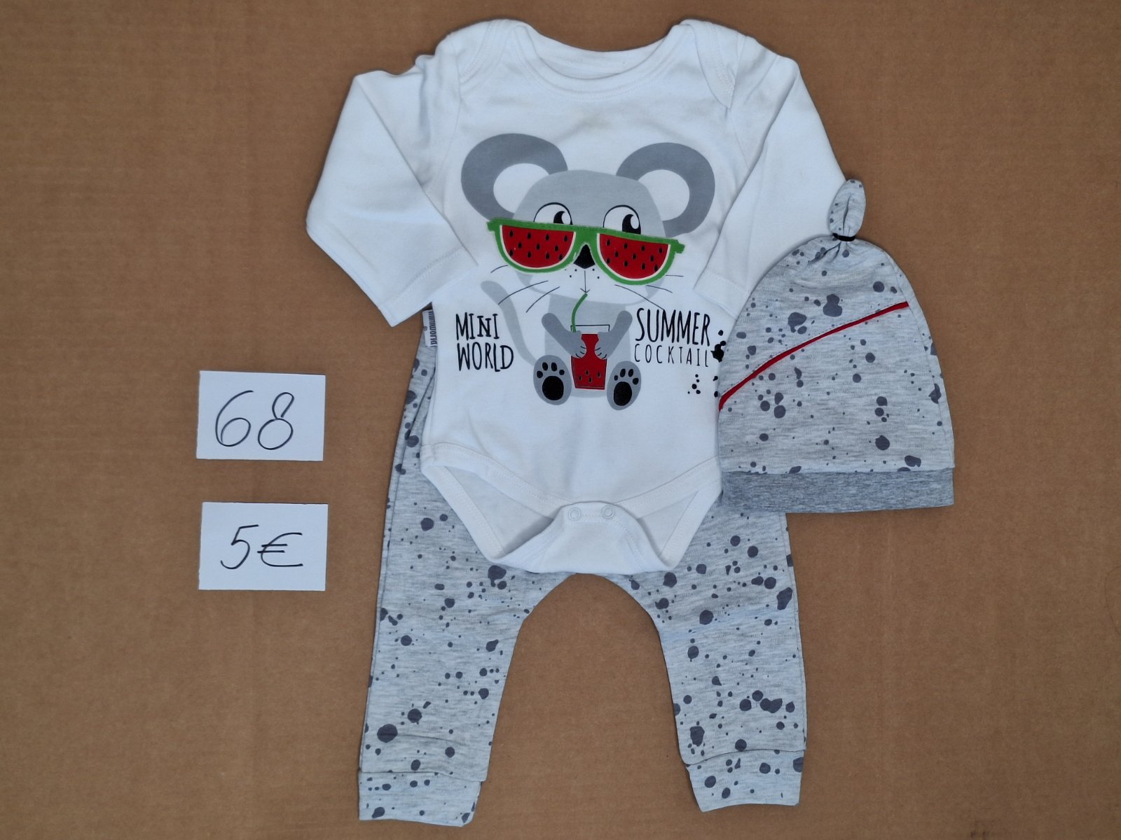 Predám málo nosený set oblečenia - body, tepláky, čiapka. Super stav. Cena + poštovné