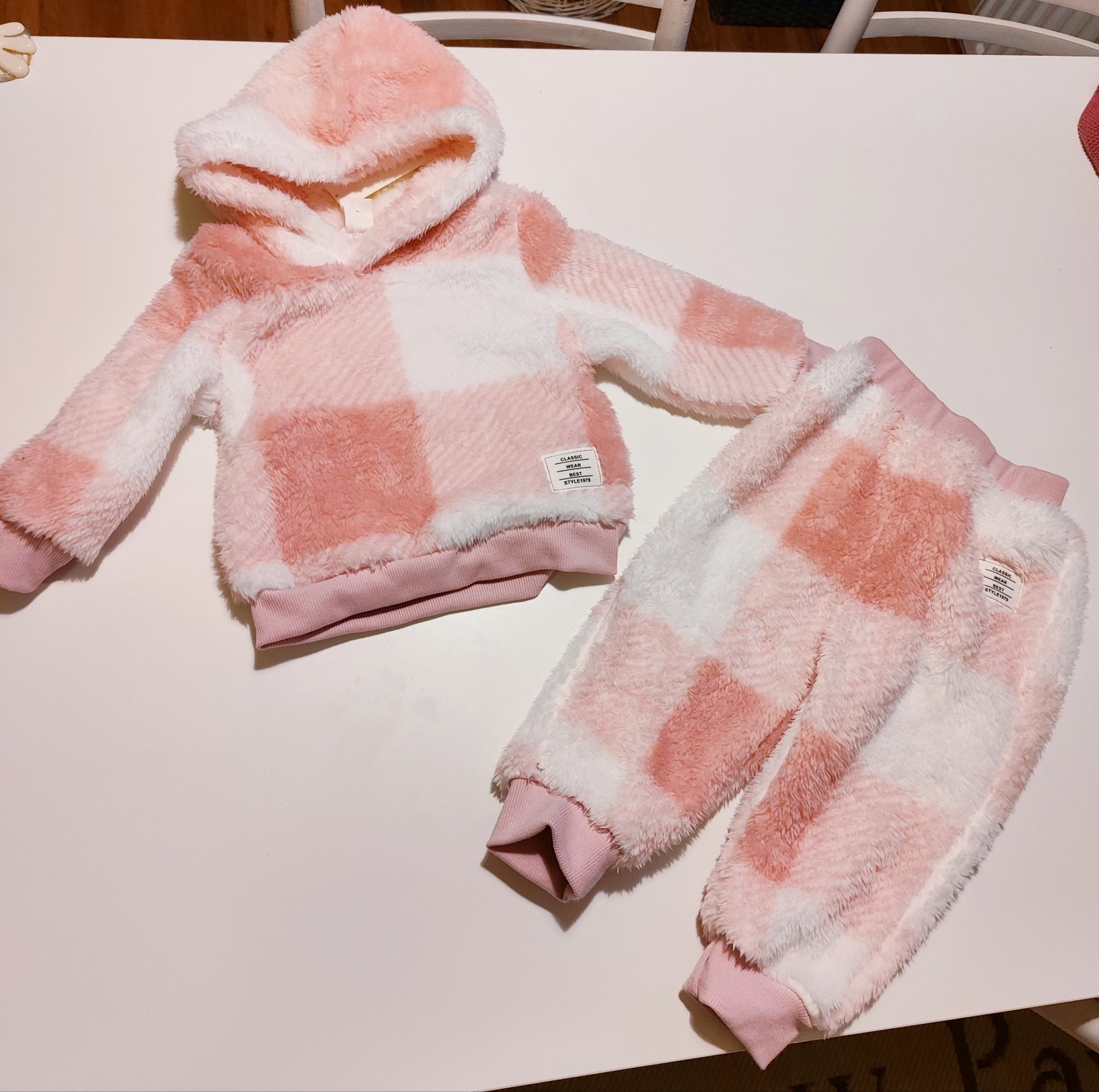 Teplákova súprava zajko, žiaľ, praním iný odtieň nohavíc a mikiny.