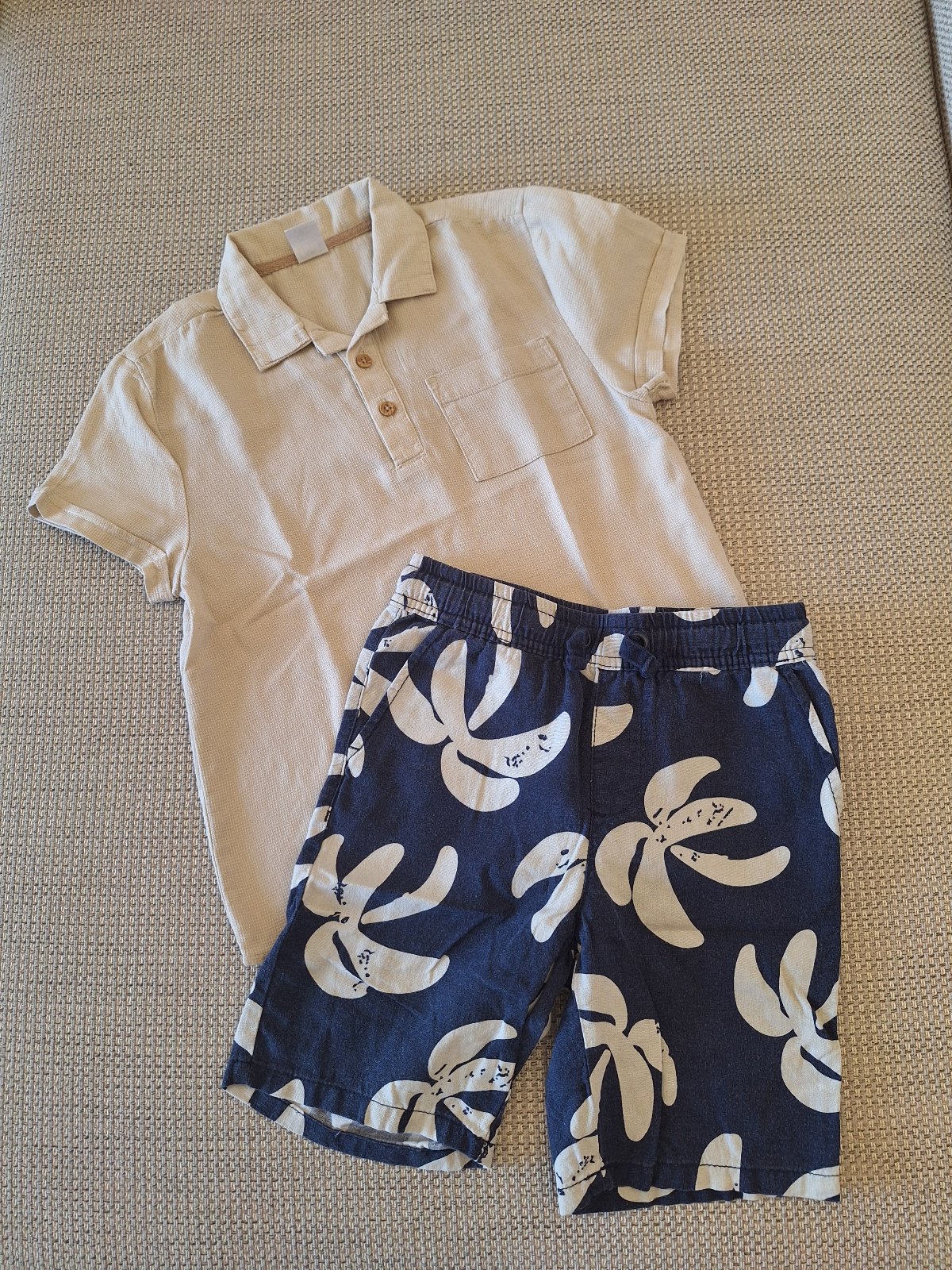 Nosená súprava. Príjemná ľahká na leto. Košeľa veľkosť 134 a šortky veľkosť 128. Bez akýchkoľvek poškodení. Žiadne fľaky, diery ani žmolky.