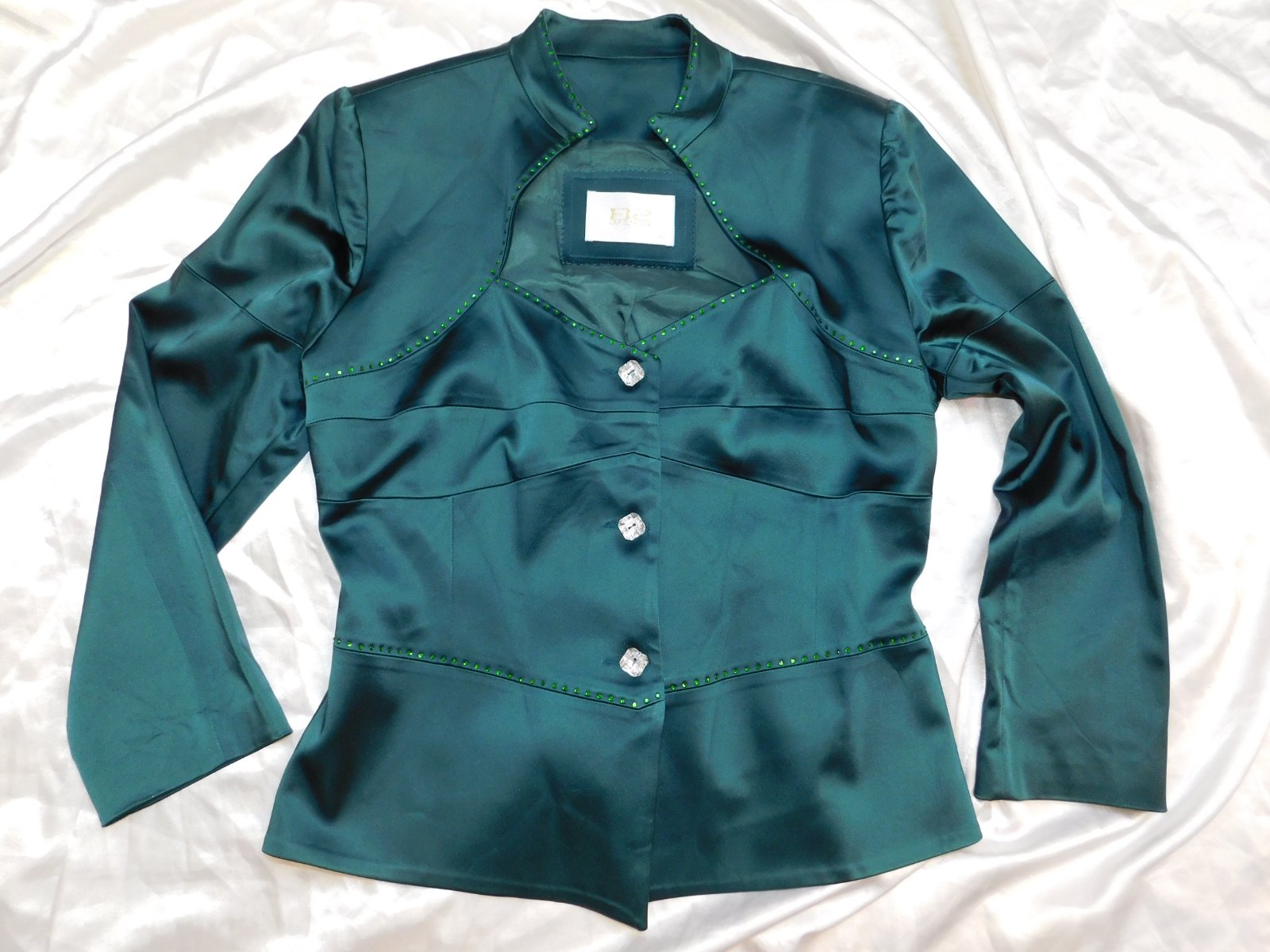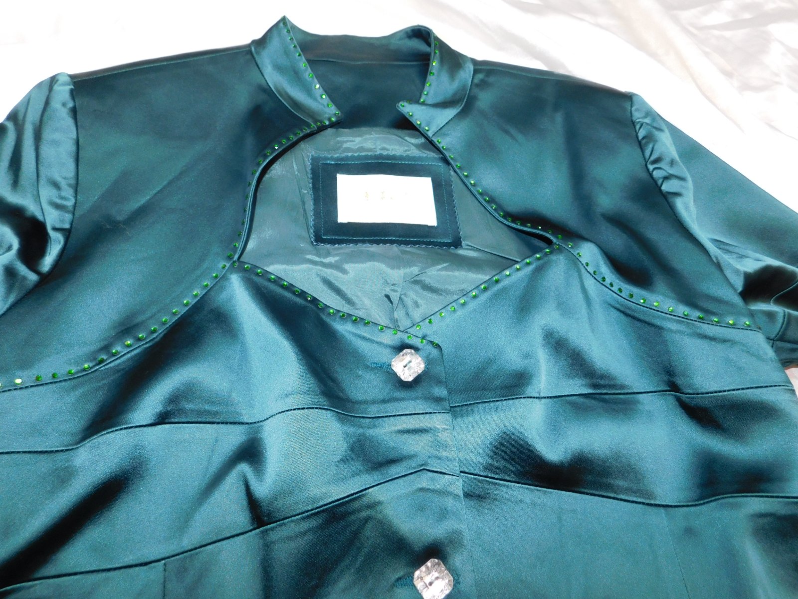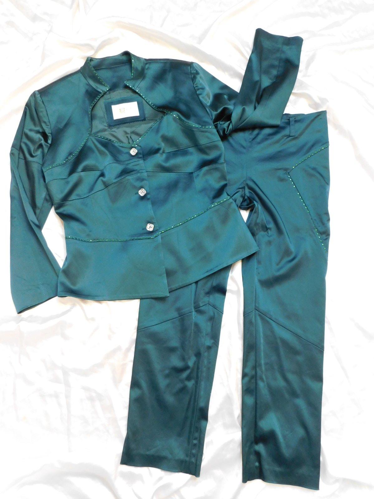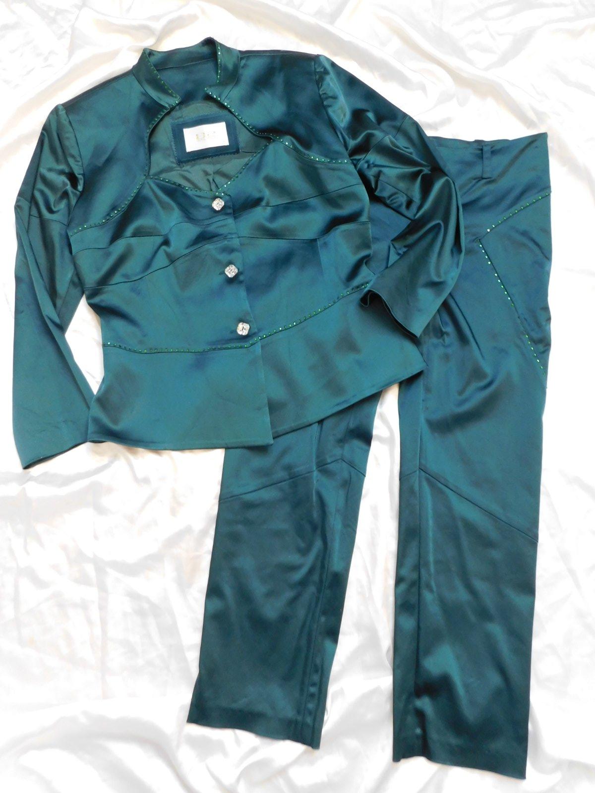 B2 BALIZZA Luxusny kostym zelenomodrej farby,z prisposobivej latky,s podšivkou.super stav.PC 480€. moj
