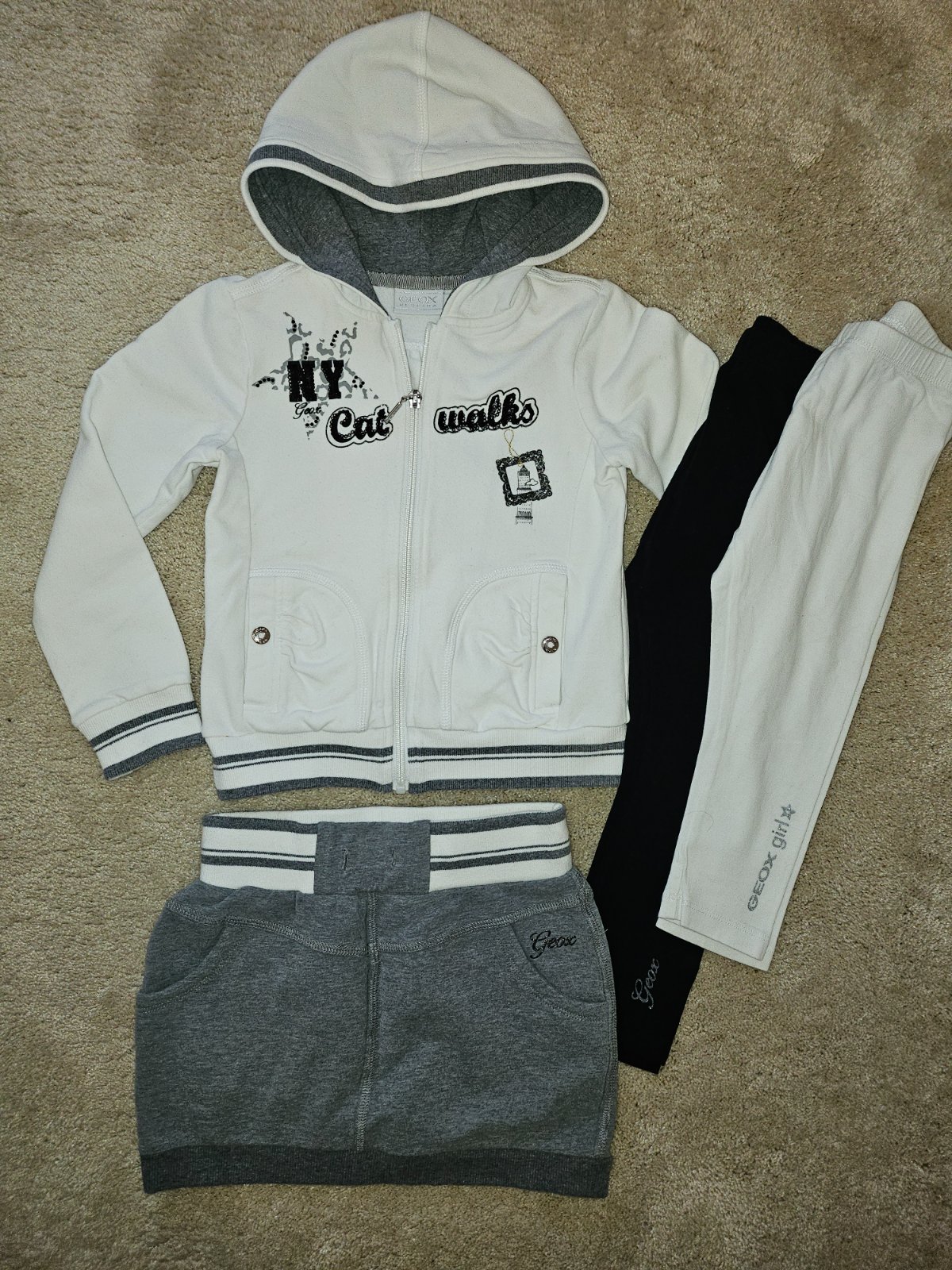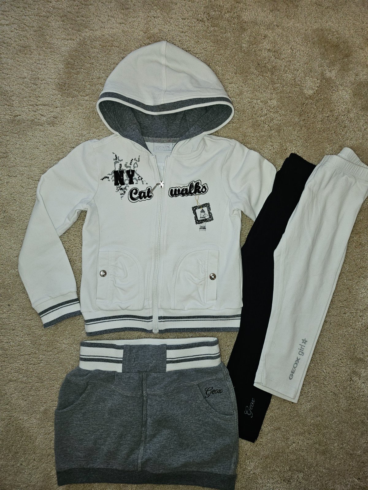 Mikina vo výbornom stave, malo nosena, značka girl2girl veľkosť 110 (4-5r), tepláky nové s visačkou autority 104/110.