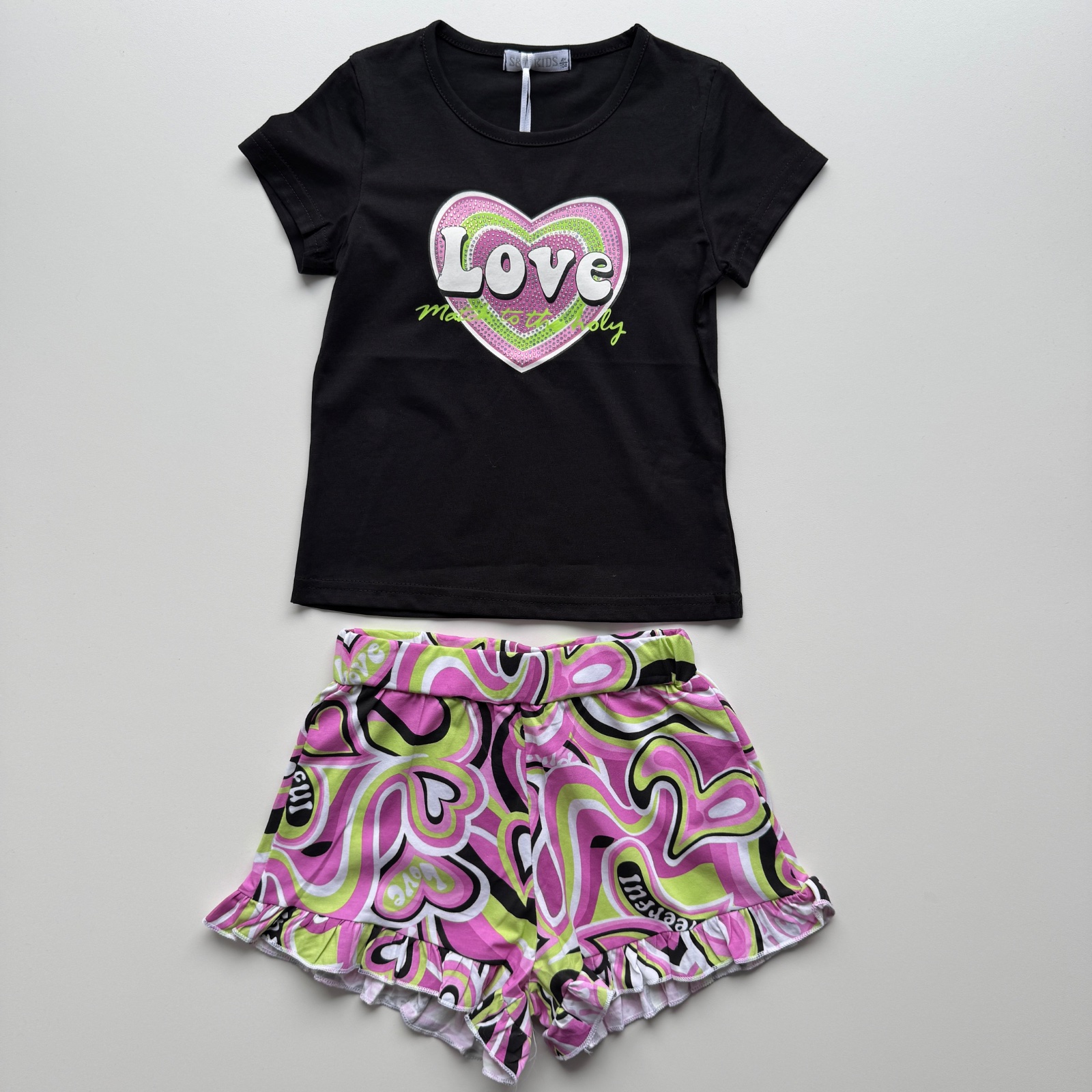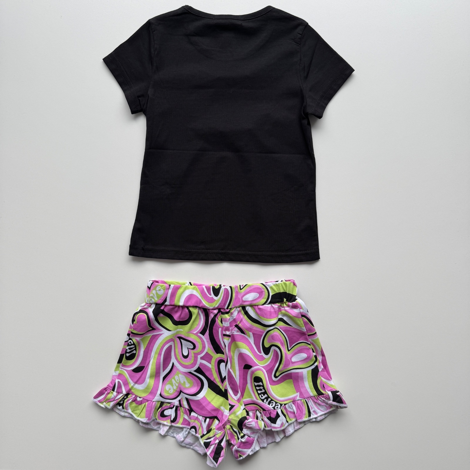 veľkosť 104 - tričko - dĺžka 39 cm, šírka pod pazuchou 2x29 cm , kraťasy - dĺžka 22 cm, pás 2x24 cm až 2x39 cm
