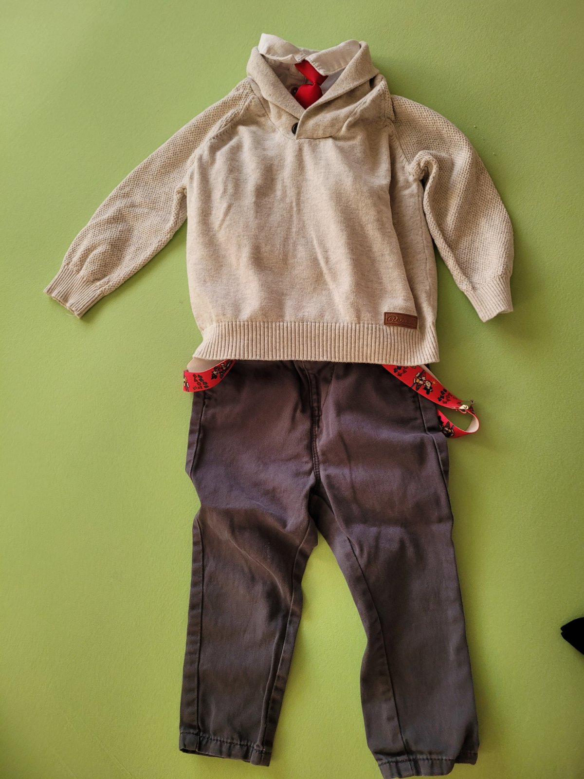 2x košeľa, nohavice, motýlik, kravata, traky , sveter (písaná veľkosť 104 ale zodpovedá 92 )