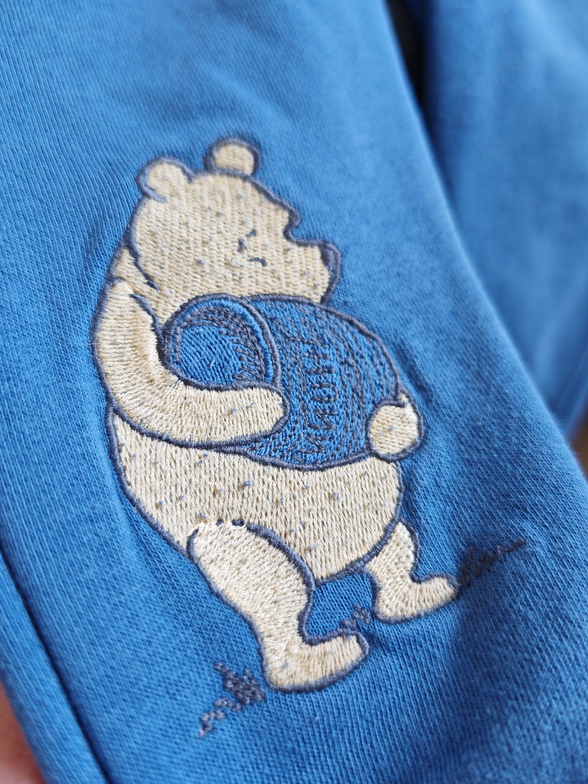 Pekný nosený stav bez poškodení, jedine na nášivke macka Pú na teplákoch sú žmolky - viď foto. Rozmery taktiež na foto