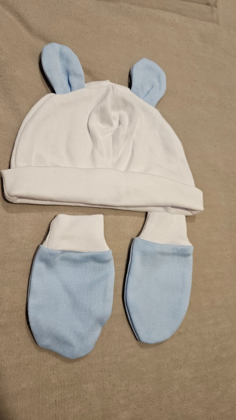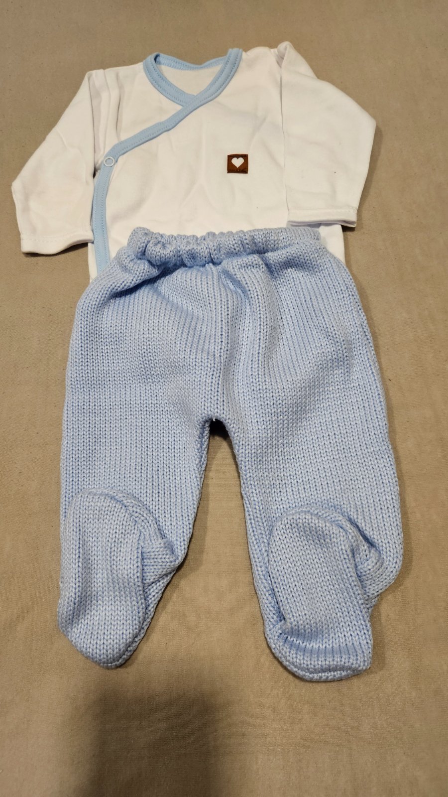 Materiál: 100% bavlna - body, čiapočka a rukavičky. 100% akryl pletené polodupačky a svetrík.