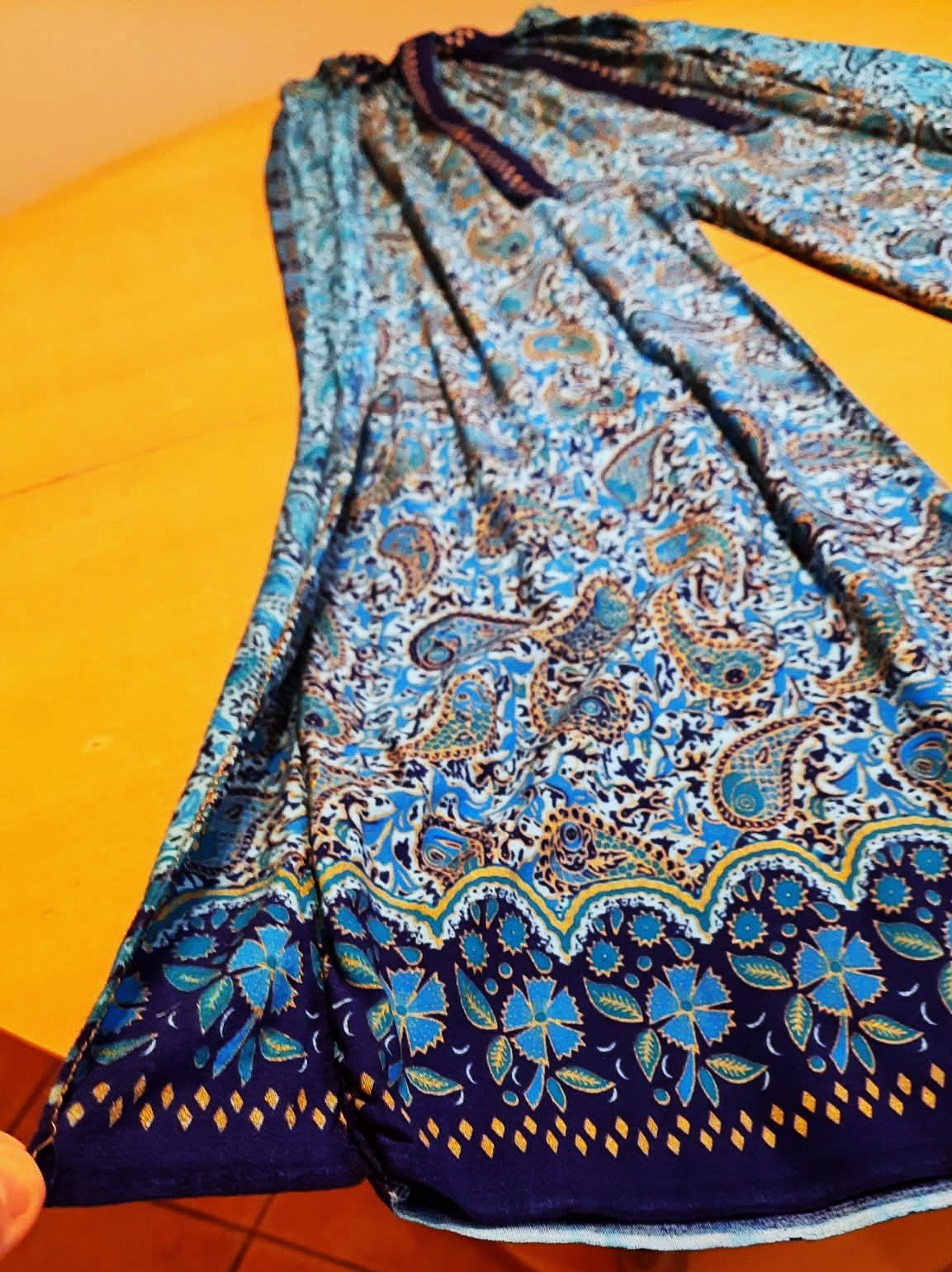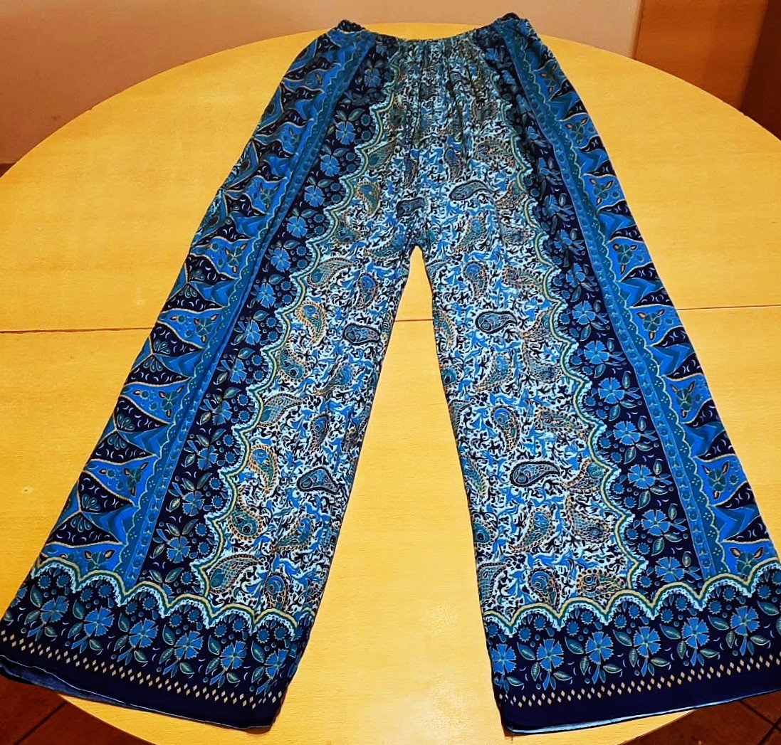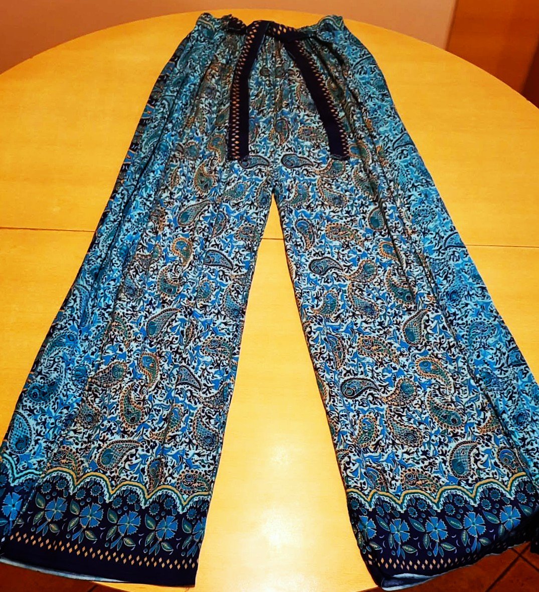 Nohavice široké-po bokoch prekrytie, v páse gumka