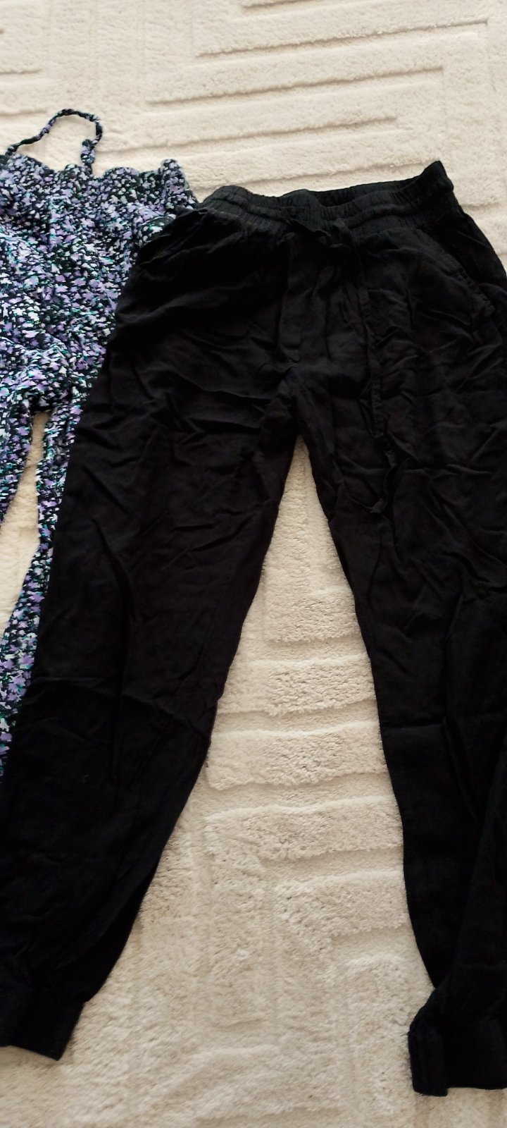 Ľahké vzdušné letné nohavice v super stave bez poškodenia. Pás 29 až 35 CM. Dĺžka čierne 82cm , kvetinové 84cm.