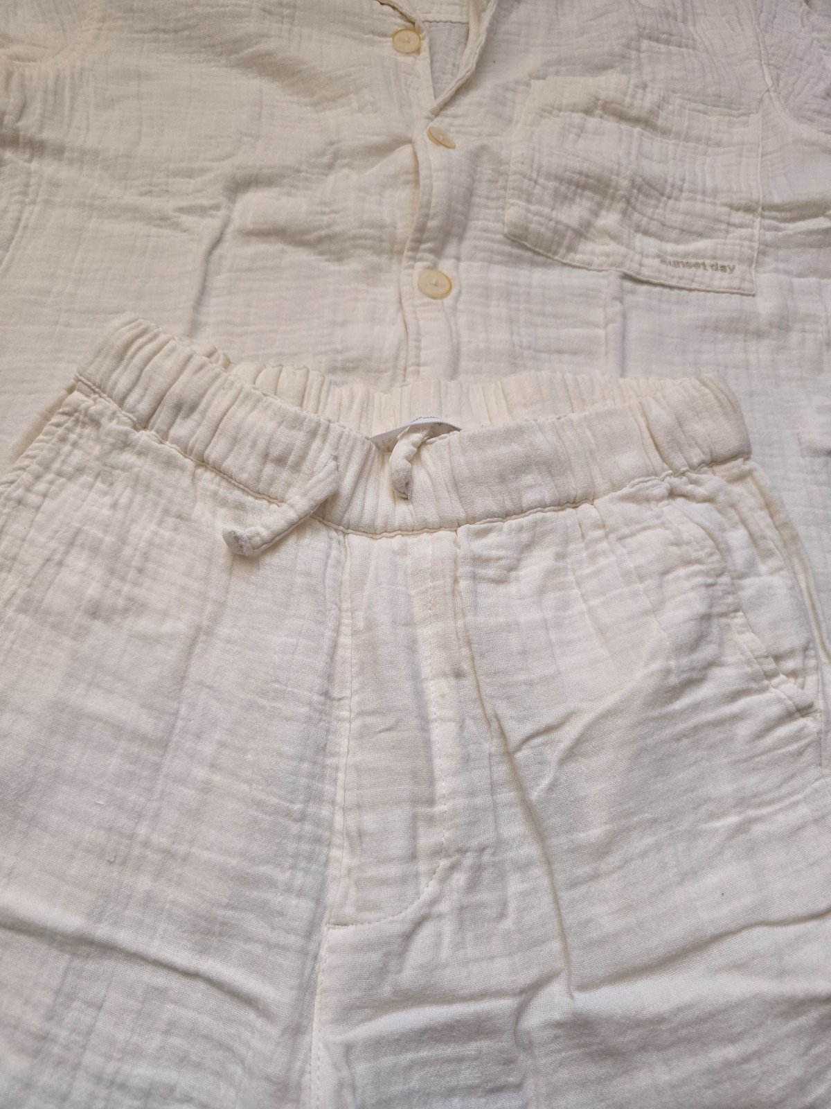 Krásna nová súprava. 100 % bavlna. Top na ramienka, dĺžka 33-35 cm. Šortky dĺžka 26 cm. Šírka pása 28cm. Na zadnej strane kraťasov je napínacia gumička pre väčší pás. K súprave je aj čelenka. Top s...