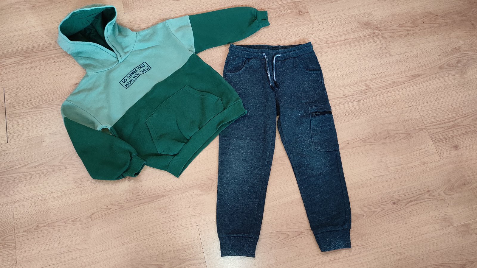 Ponúkam na predaj pekne veci pre chlapca. Mikina je zn. h&m vo výbornom stave, nevyblednuta, mäkká, výborne sa nosí, na tepláckoch už vidno nosenie, ale poškodenia nemajú, určite ešte dobre poslúžia. Cena 8 eur.
