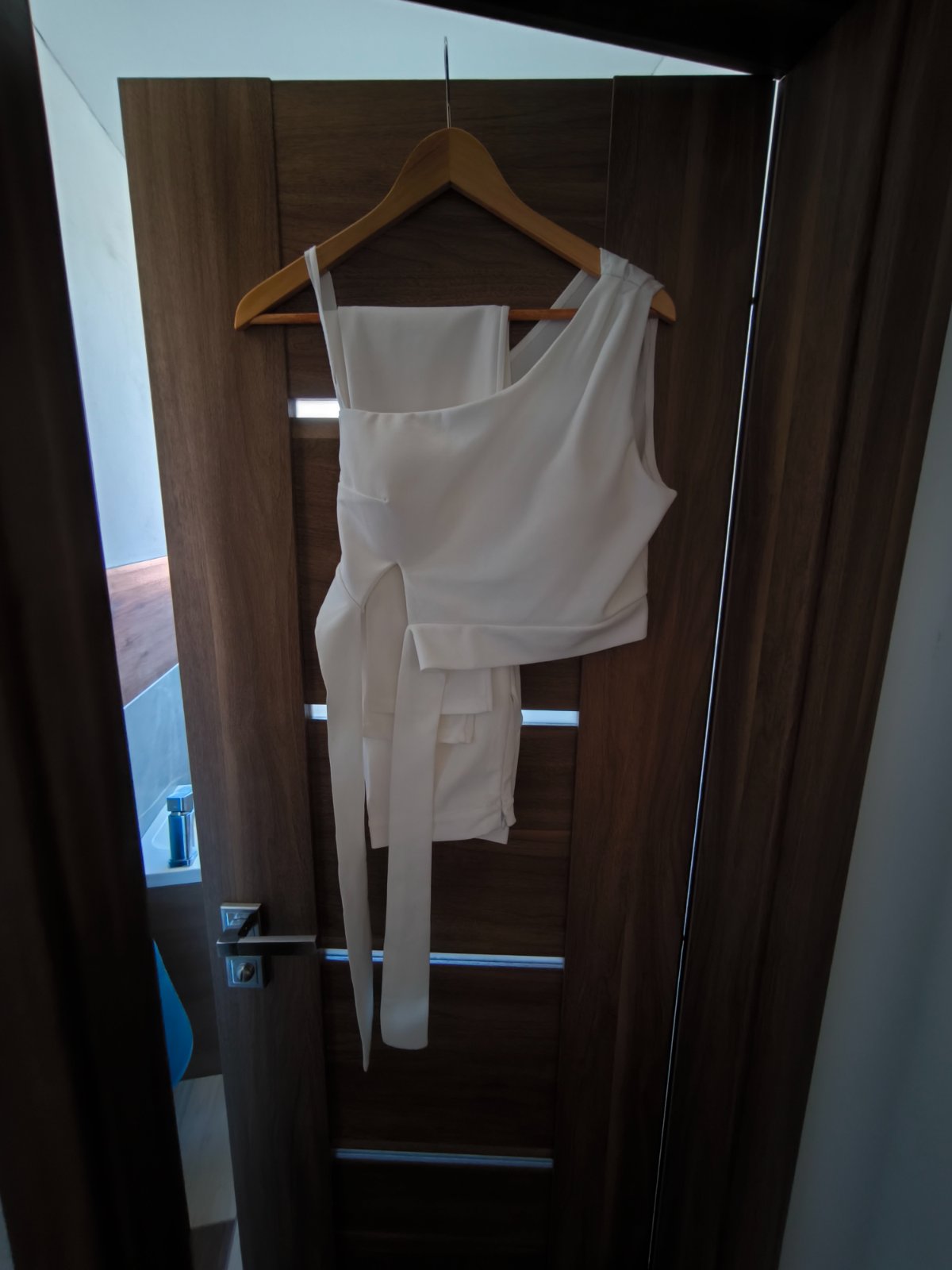 Nenosený no napriek tomu som si všimla na nohaviciach odtrhnutý kúsok nitky ..je to odfotené...top má vypchavky....pôvodná cena bola 40€