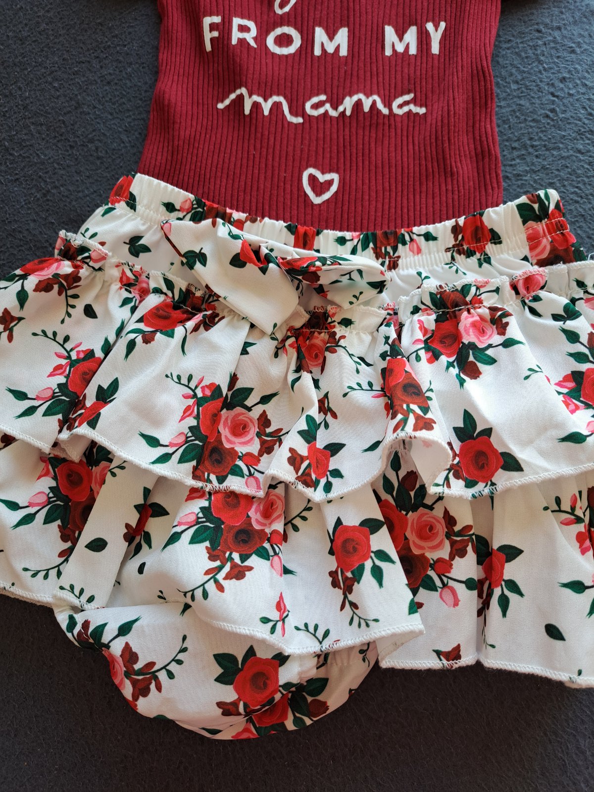SKLADOM Letná trojdielna súprava: kvetovaná blúzka bez rukávov, jednofarebné univerzálne body s krátkym rukávom s jemnou červenou mašličkou, červené pohodlné šortky. Model 3-Piece Floral Little Sh...