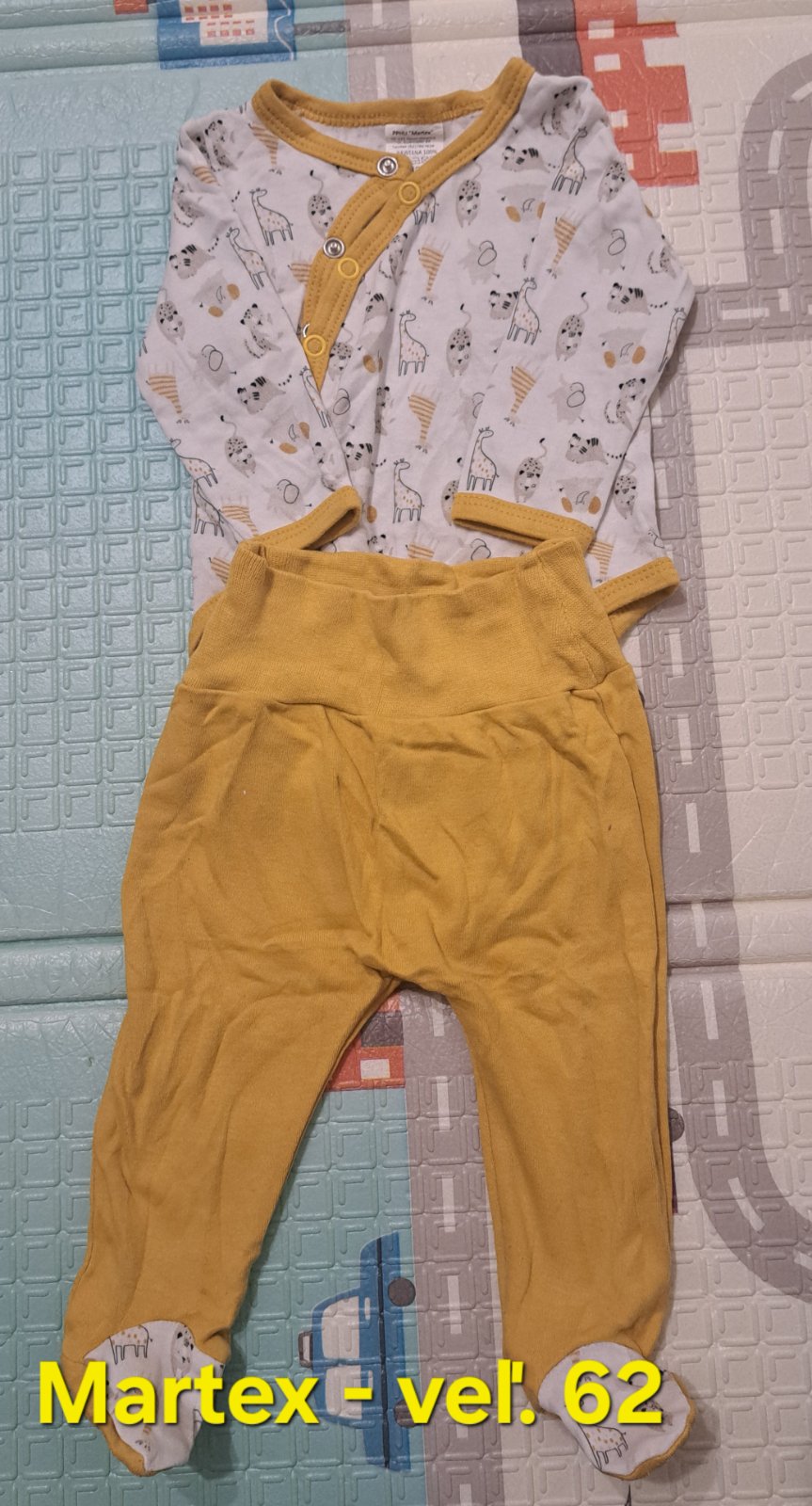 Predám dojčenský set body s polodupačkami, veľkosť 62, cena 4 €.