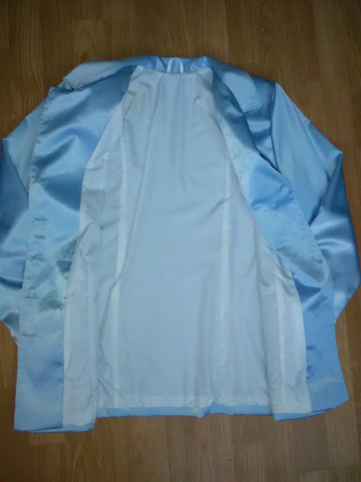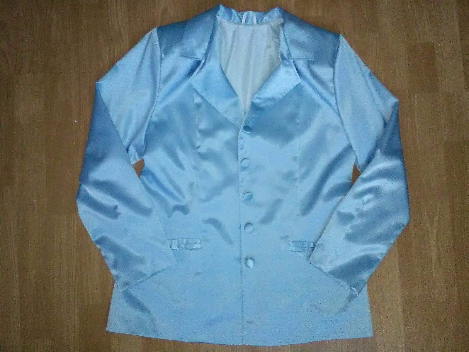 Kostým je vo veľmi dobrom stave, málo nosený. Je z takej lesklej látky. V prípade záujmu rada premeriam.