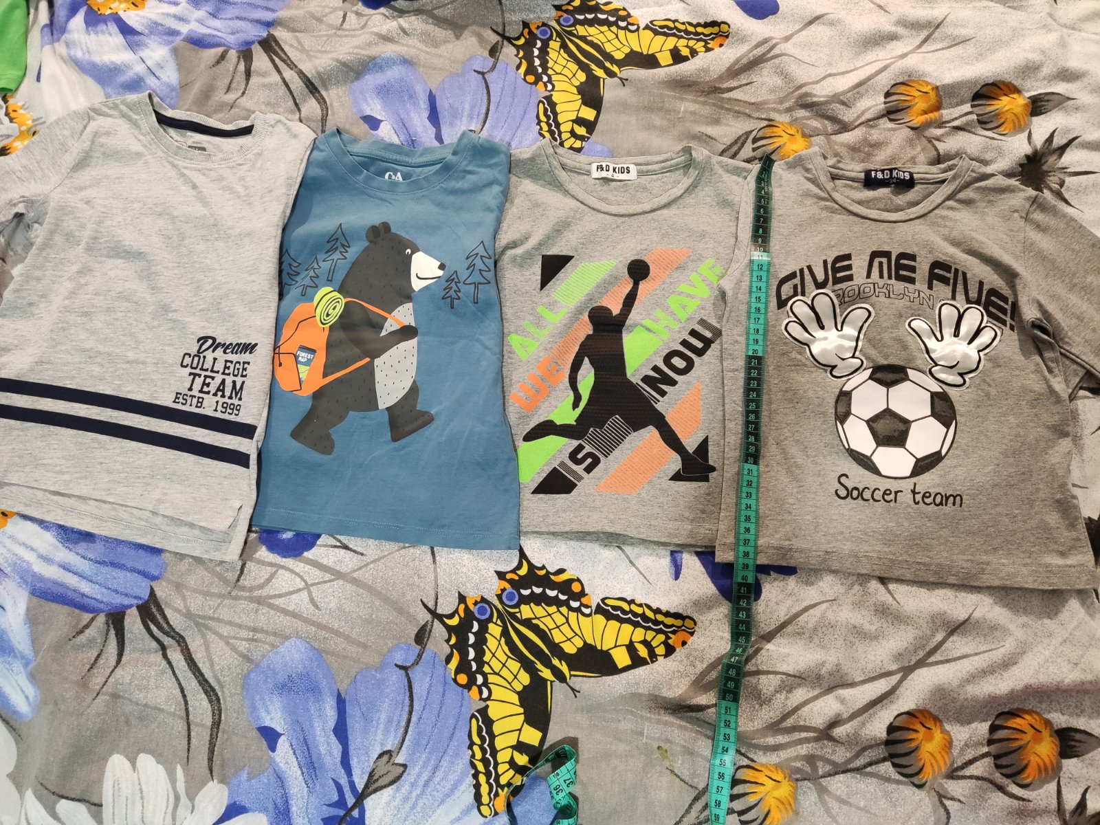 Pri niektorých tričkách píšu veľkosť 116,preto som veci aj pomerala,aby ste si mohli porovnať.