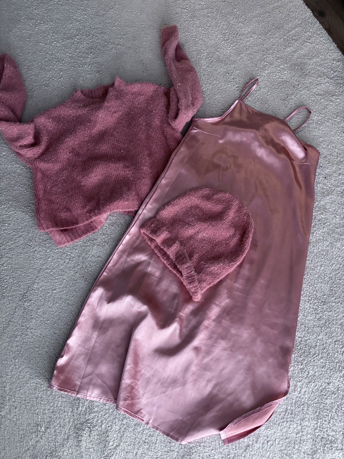 Nadherny komplet, saty, svetrik a ciapka. Top stav
