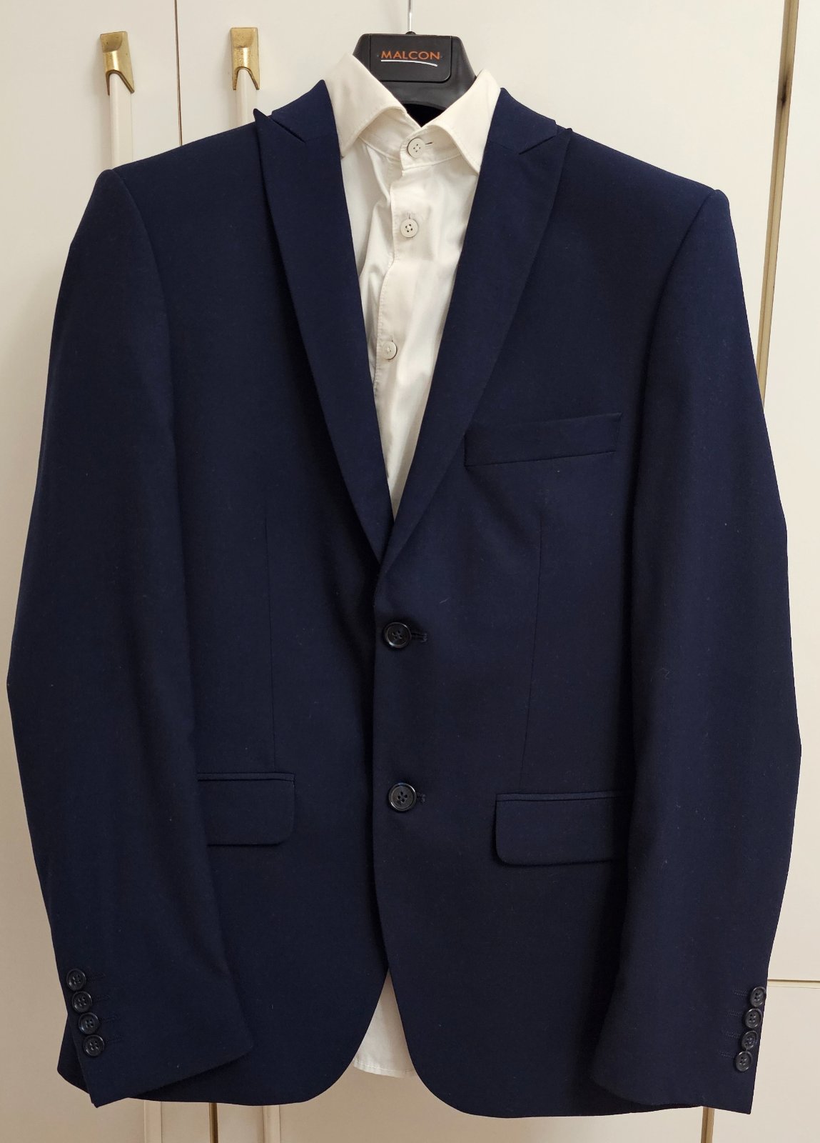 Predám pánsky oblek..a pánsku bielu košeľu...kupované v značkovom obchode OK MÓDA ..Značka obleku MALCON...Nohavice rozmery pás 40cm..dĺžka nohavíc 99cm..a stehná 21cm..Rozmery saka a košeli sú na fotke v inzeráte....Plus biela košeľa značka CALAMAR .Oblek bol použitý len na jednej slávnosti svadby..Oblek je kvalitný z nekrčivej látky aj košeľa..Pôvodná cena obleku a košeli spolu 280 euro...ako darček ponúkam modrý motýlik...Cena VÝPREDAJ úplne pod cenu obleku lebo je kvalitný a značkový oblek aj košeľa 12 euro plus poštovné .Pri pripísaní sumy na účet posielam tovar na adresu poštou.