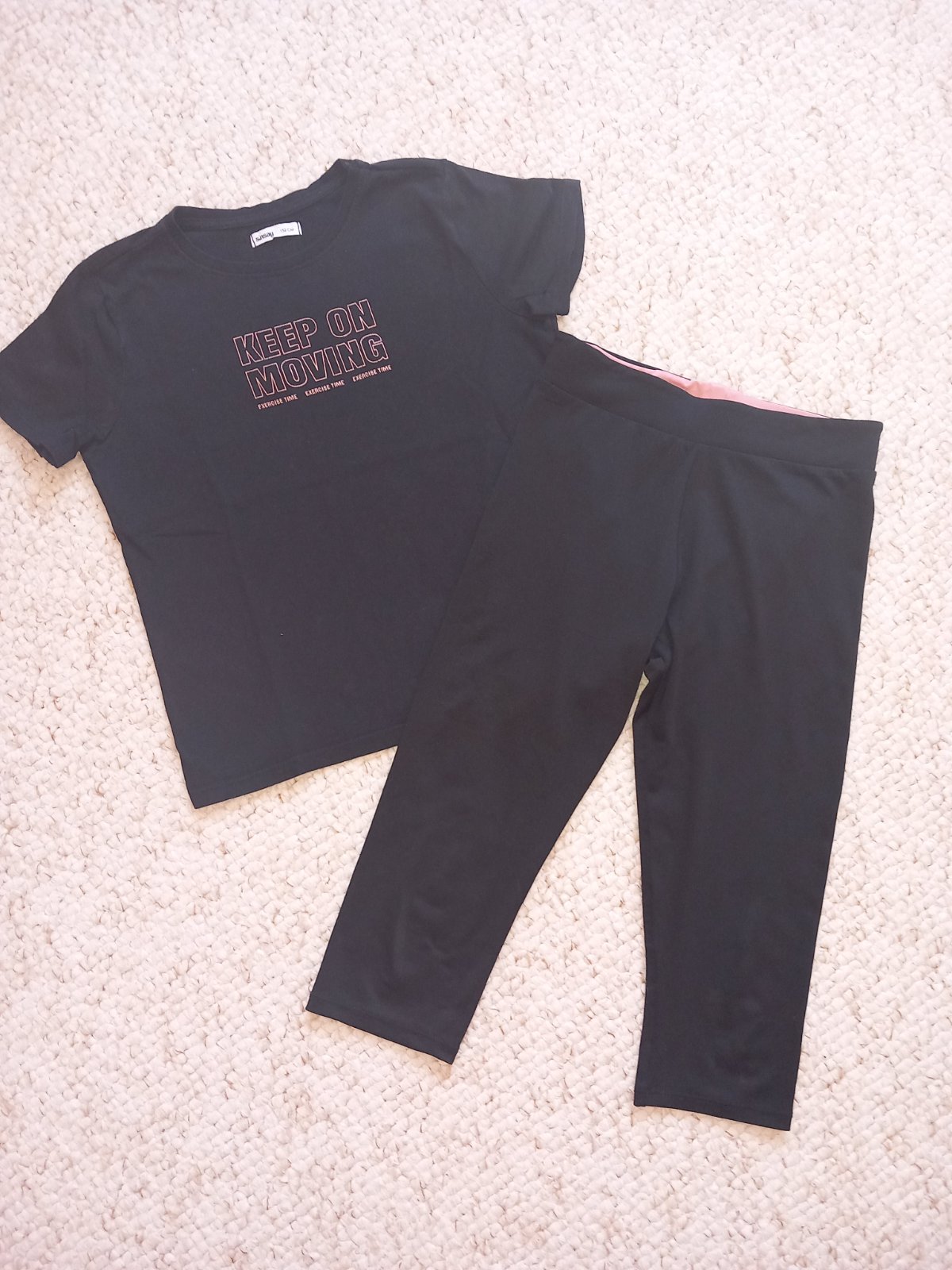 Čierny športový set tričko a 3/4 legíny zn. Sinsay, veľkosť 152, párkrát oblečený, výborný stav