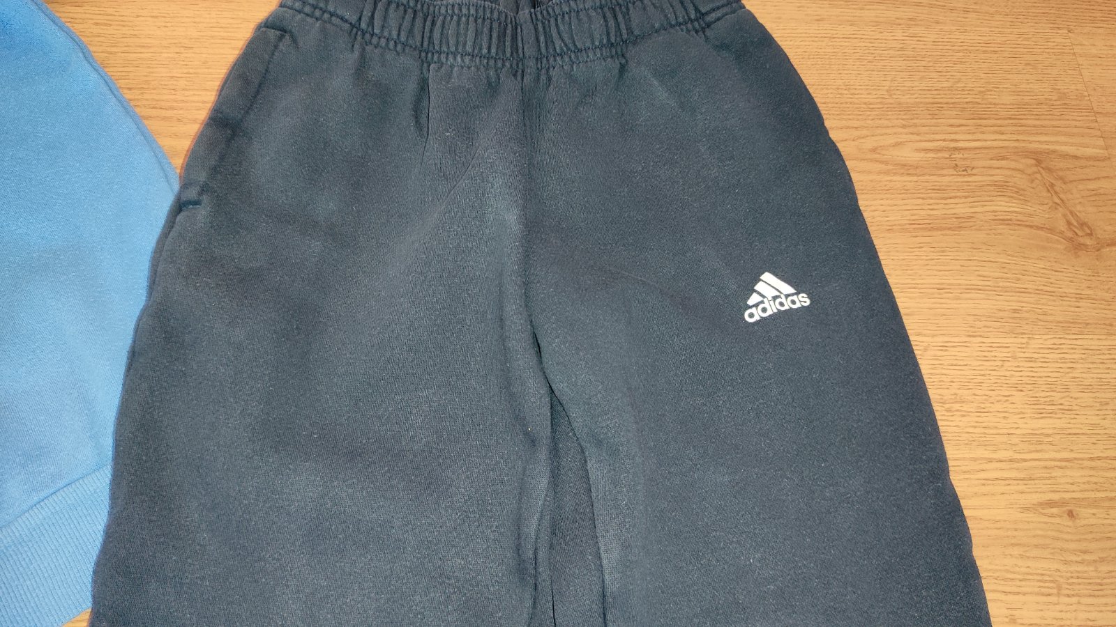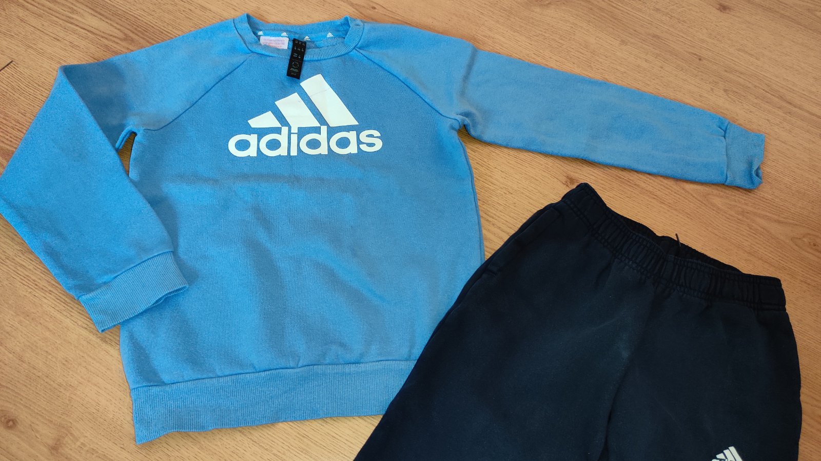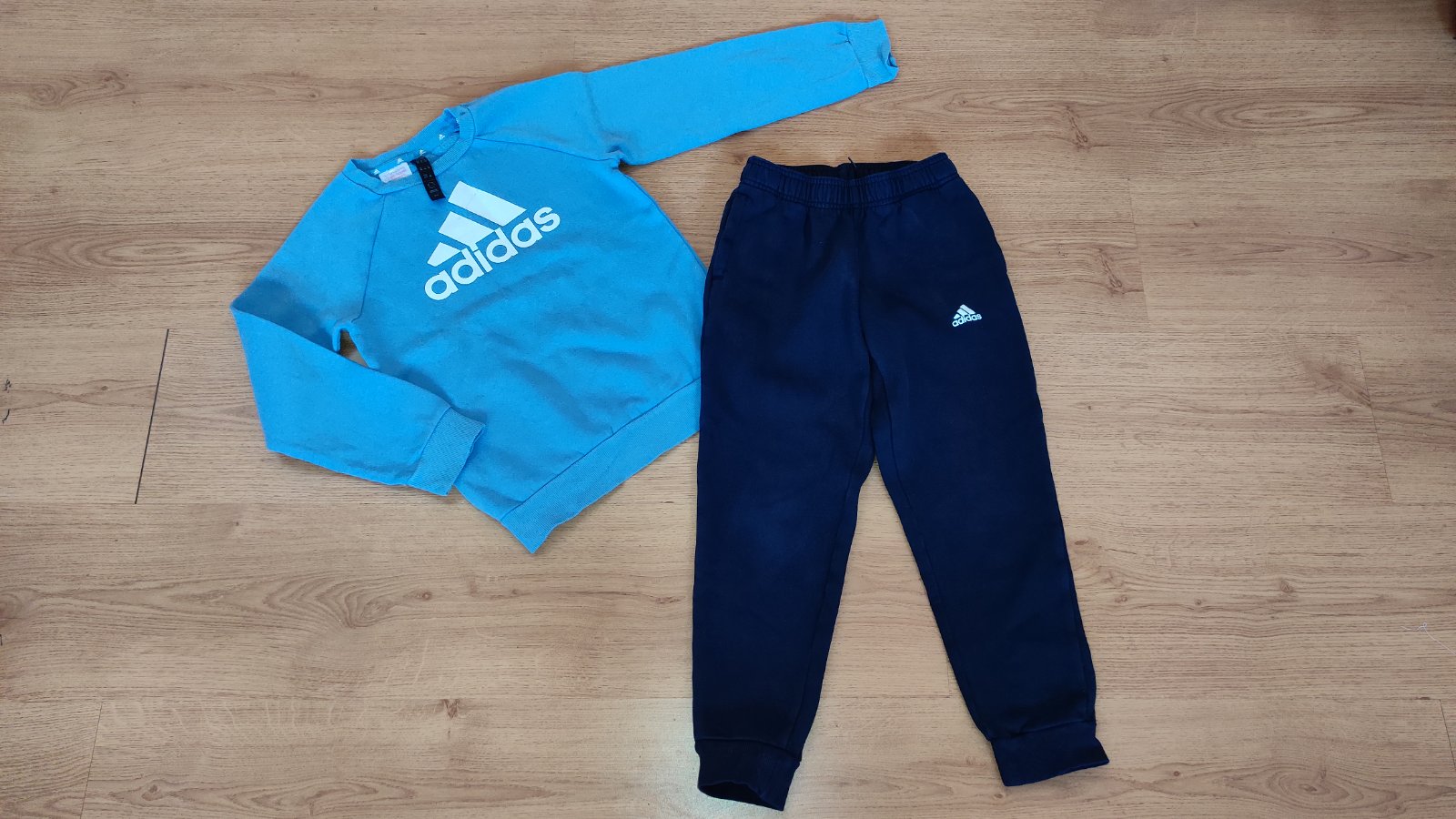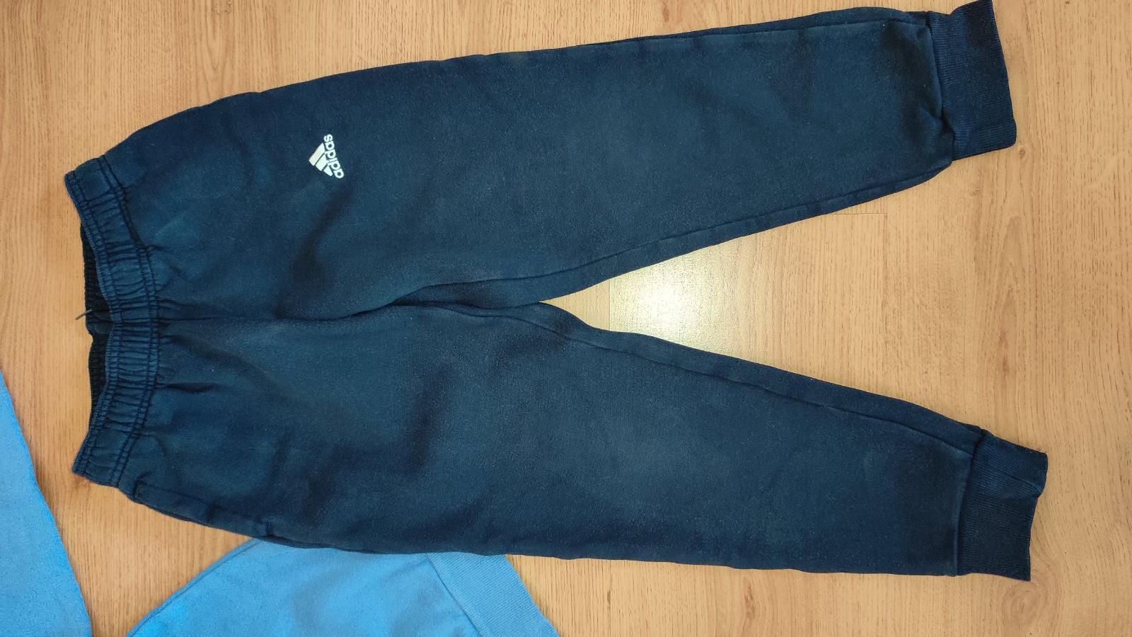 Ponúkam na predaj peknú bavlnenú súpravu pre chlapca. Nosena do skoly, trochu vidno na tmavej farbe, ale stále pekná, v pohode ďalej nositeľna, nemá žiadne dierky fľaky, kolená neosuchane. Cez nápis je jemná čiarka od pera, syn prešiel v škole perom, takmer nevidno, viď foto. Zrejme to pôjde vyčistiť. Cena 14 eur.