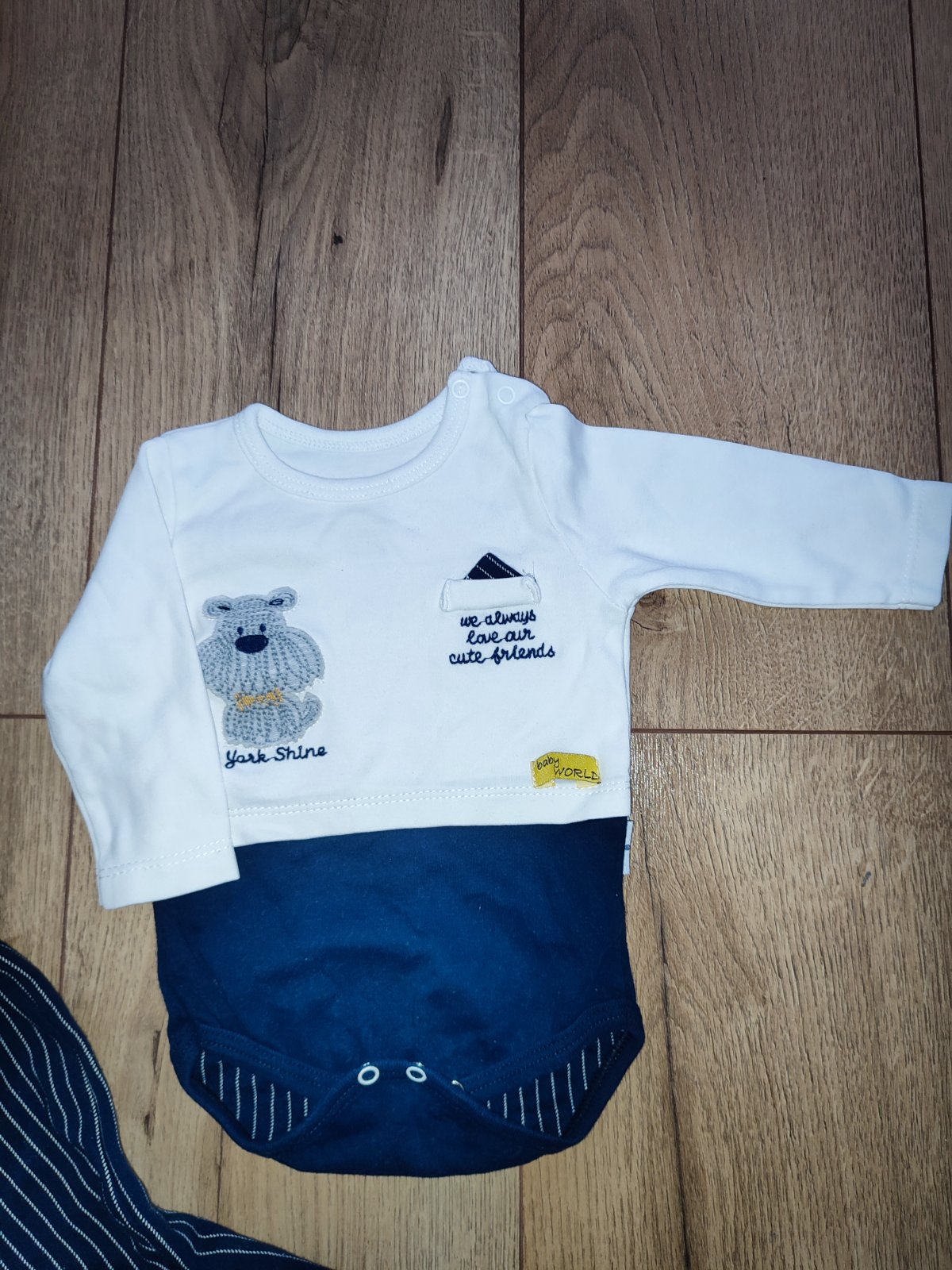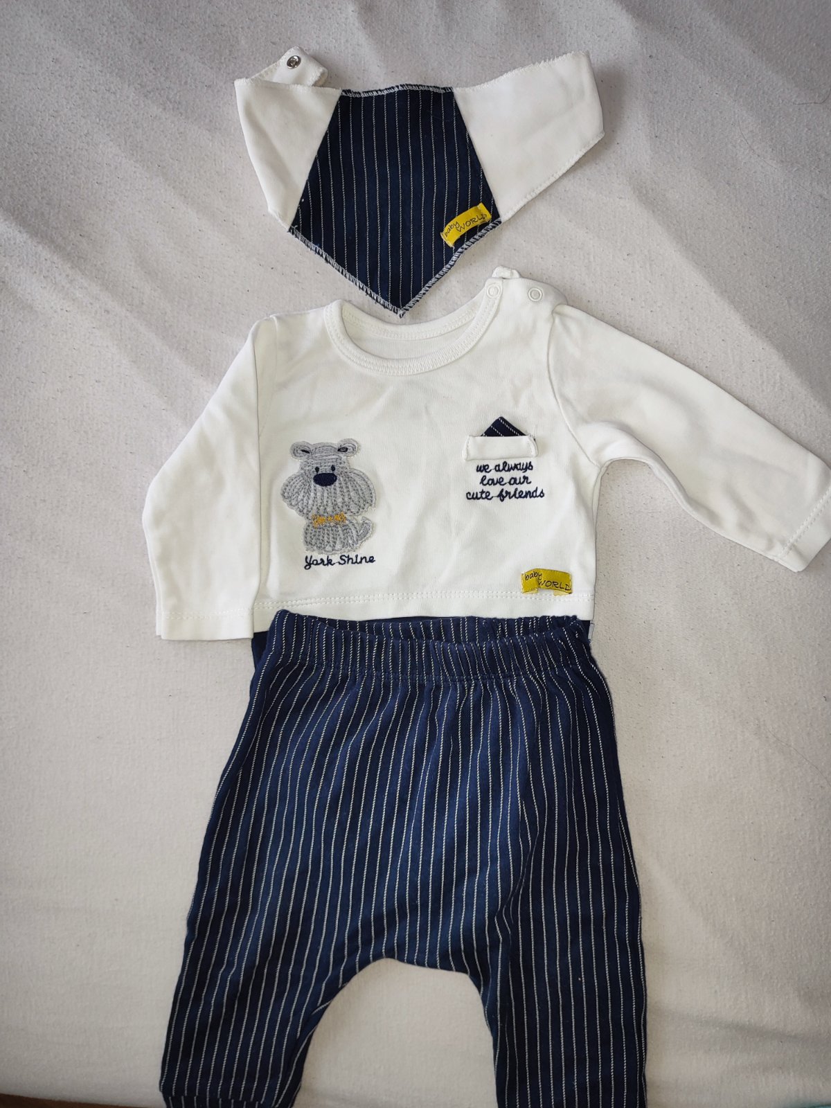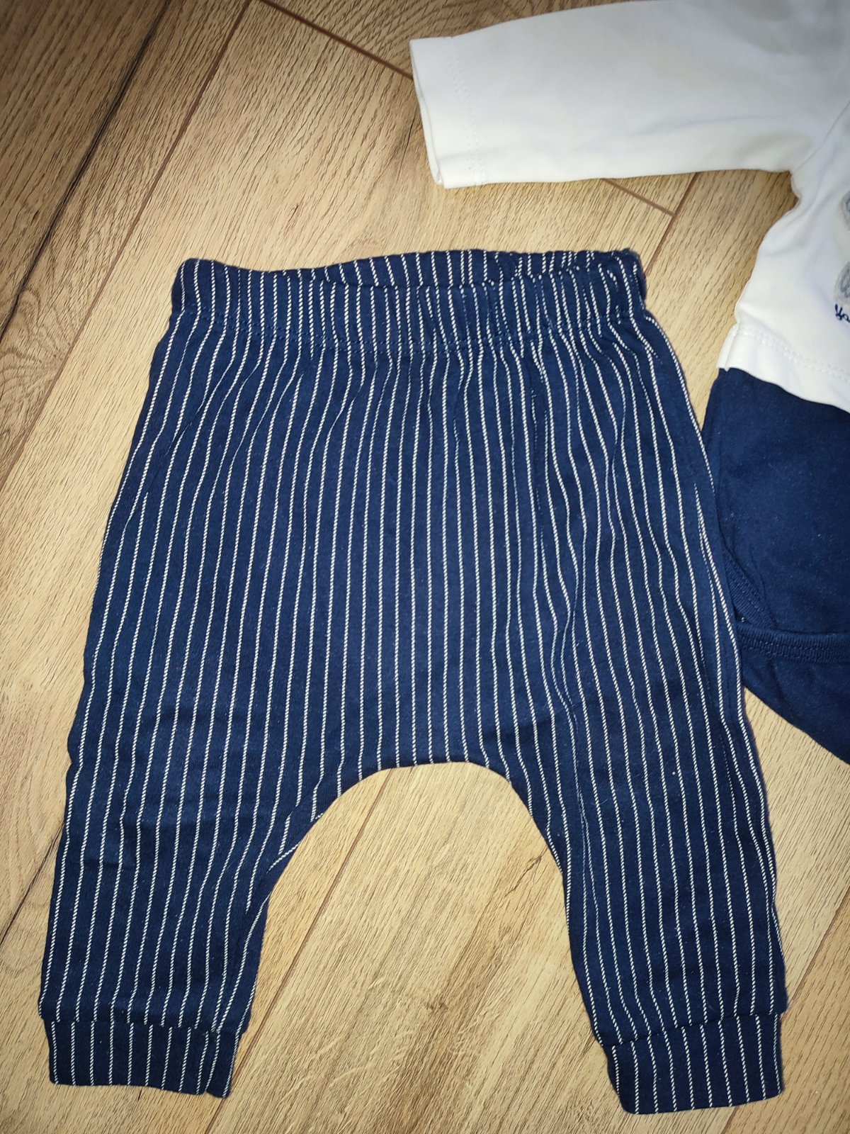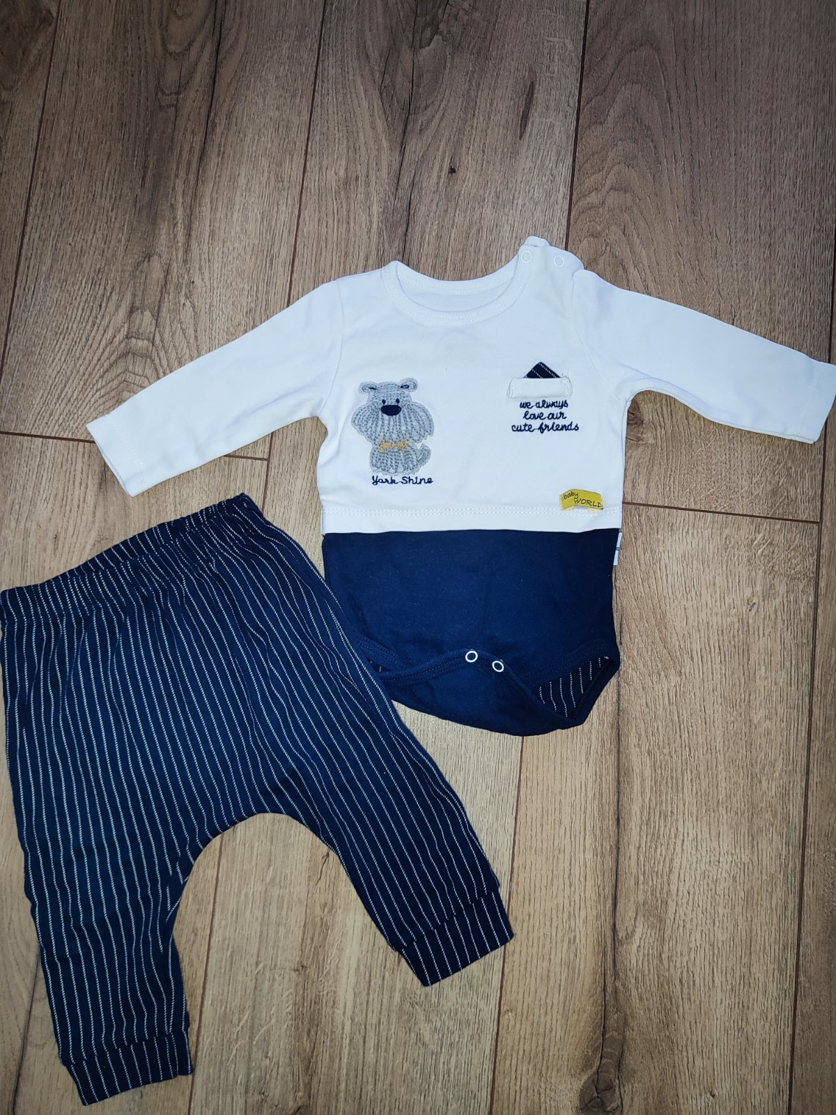 Súprava pozostáva z body, nohavíc ( sú to skôr elegantné legíny na gumičku) a nakrcnika. Super stav. Nemá žiadne poškodenie