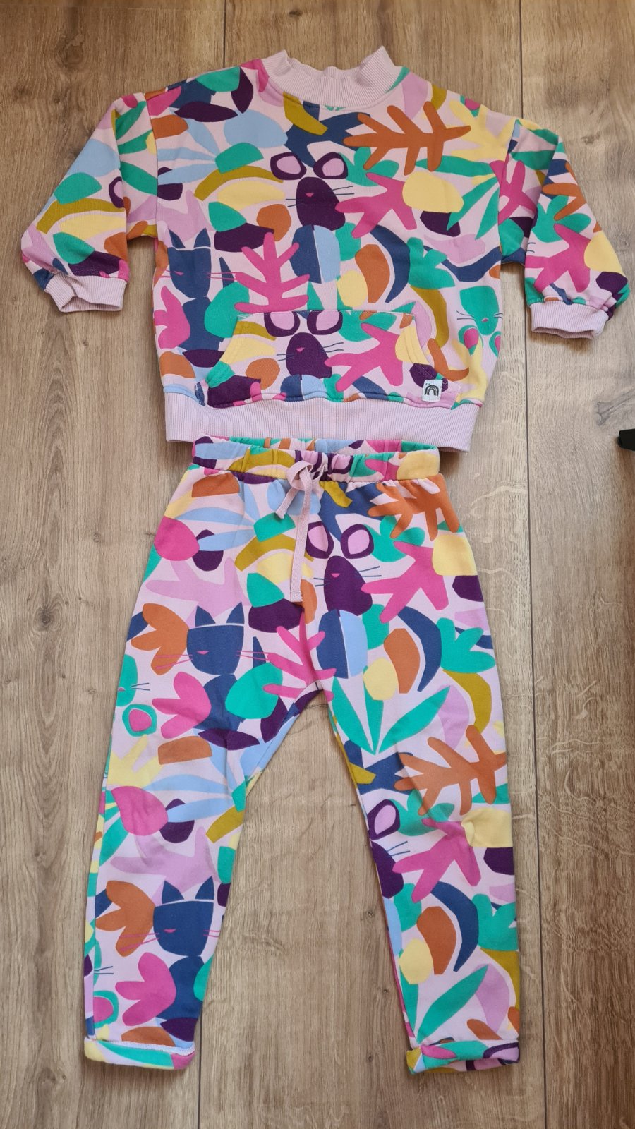 Perfektna suprava jungle so skrytou myskou a mackou, mikina je moderna sirsia pod pazuchami s volnymi rukavmi, krasne ukaze. Teplejsia teplakovina.