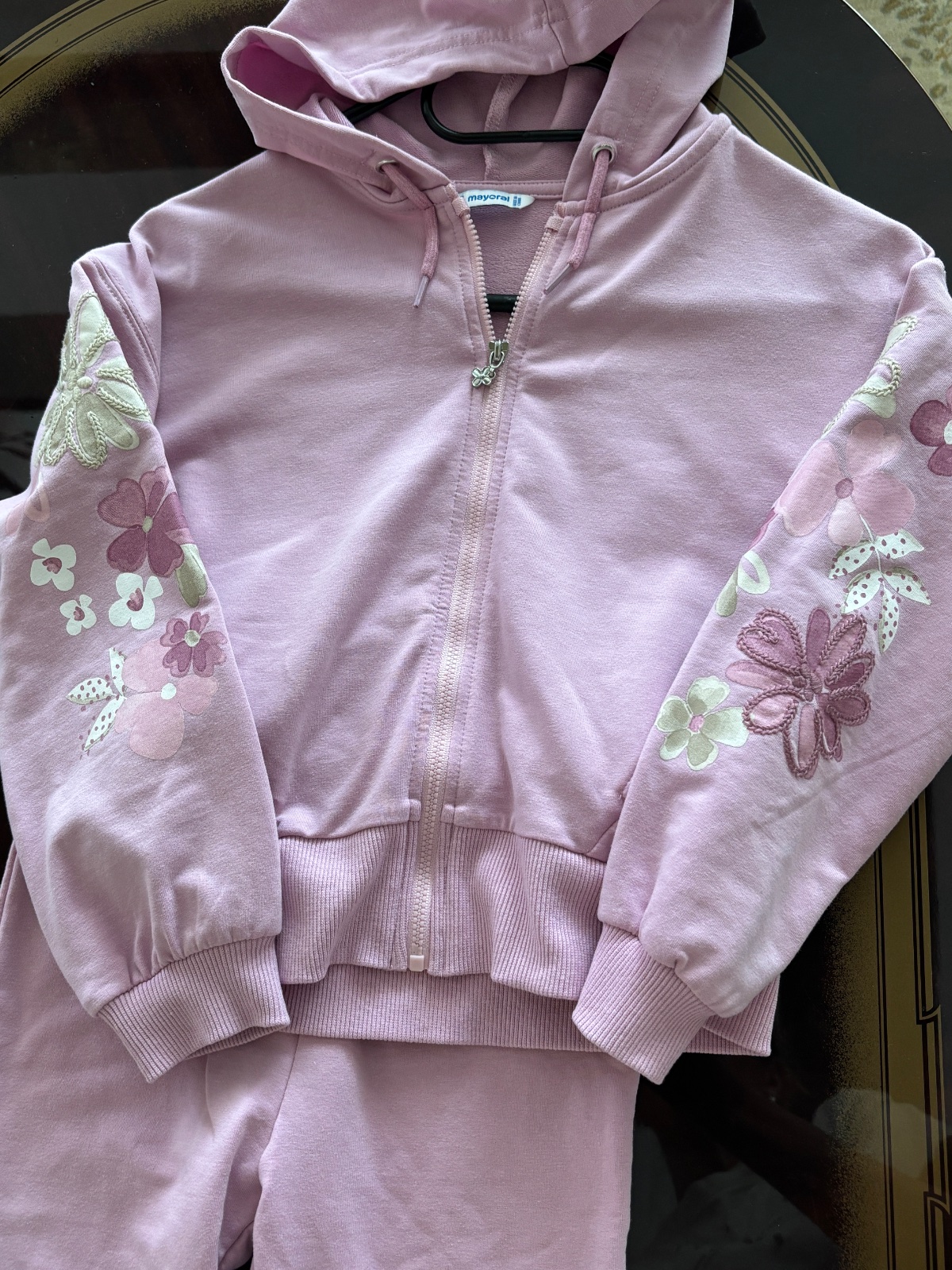 Ponukam na predaj krasny znackovy setik pre dievcatko do skoly. Predlzena mikina a teplakove nohavice. Vecicky boli nosene, ale su vo vybornom stave, bez akychkolvek poskodeni, zmolkov, nevyblednut...