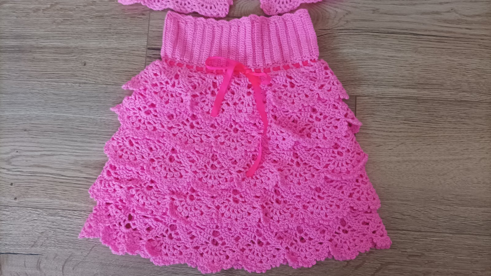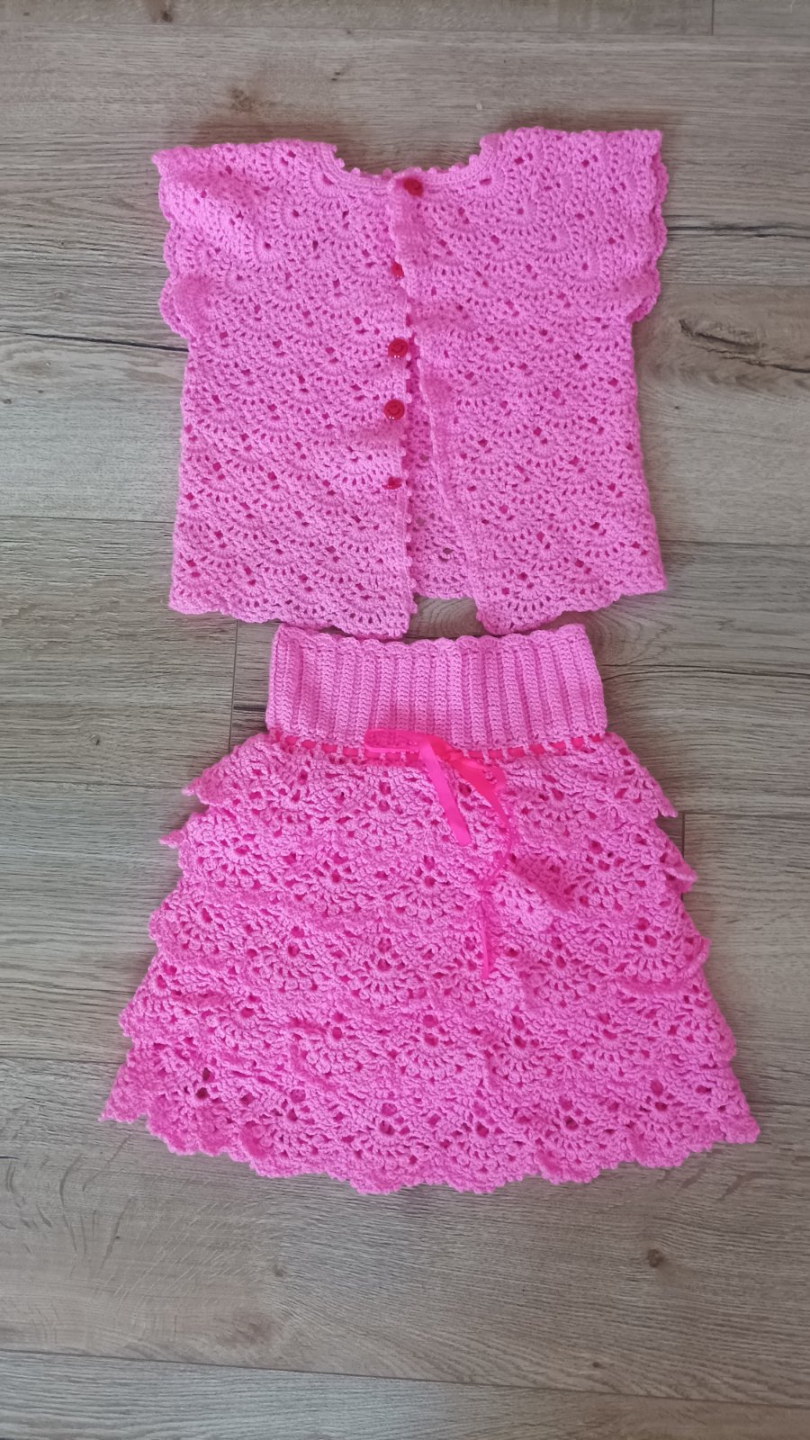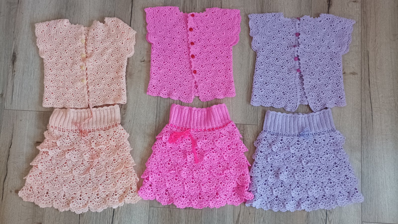 Vyrobené s láskou od babičky. Iba raz oblečené. Veľkostne sú všetky rovnaké. Rozmery sú orientačné, pretože sa dajú naťahovať. Sukňa má šnúrku s ktorou sa dá pás pekne stiahnuť.