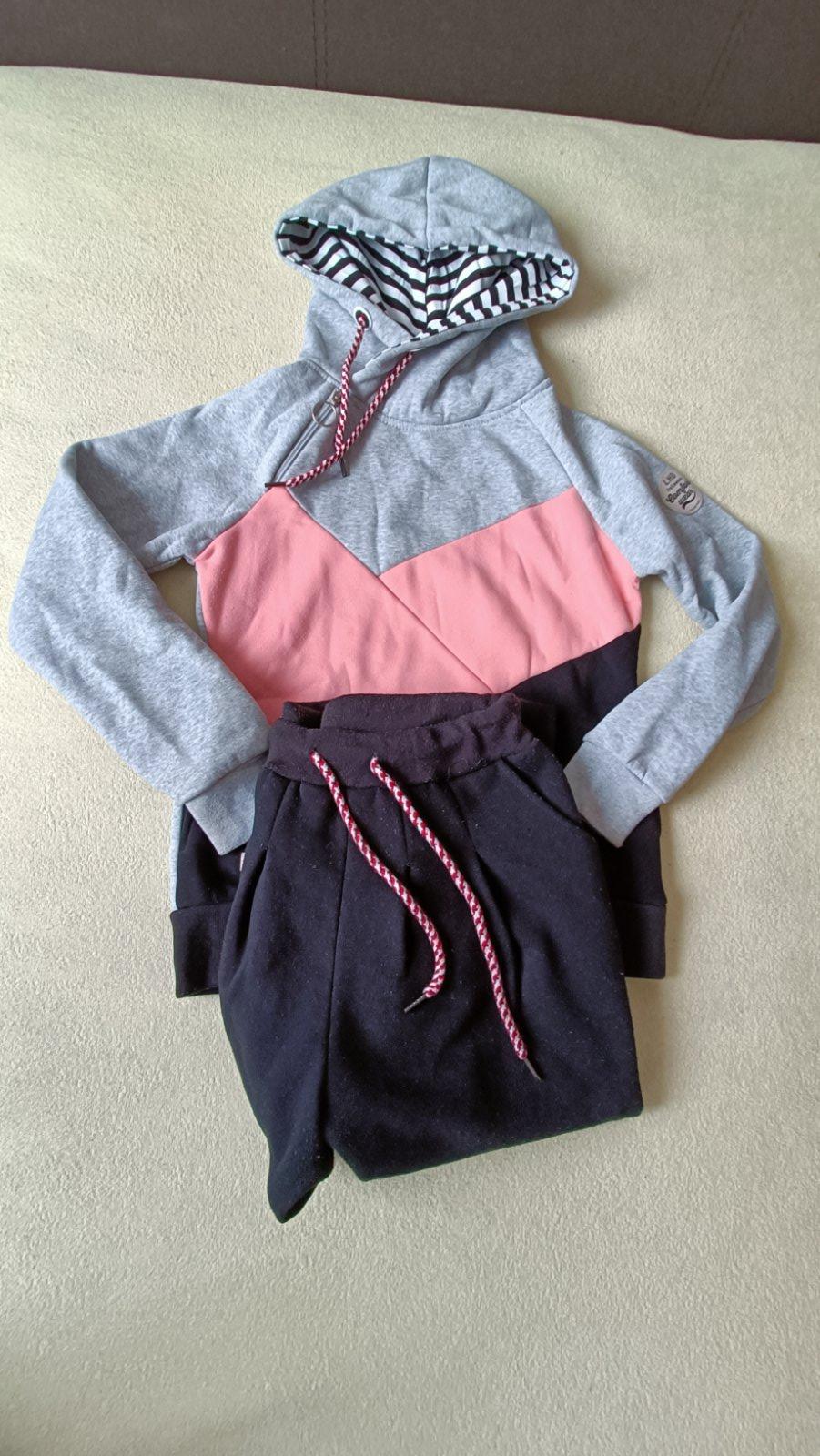 Predám súpravu - mikinu a tepláky. Mikina-dĺžka 59 cm, šírka pod pazuchami 48cm, dĺžka rukáva od výstrihu 70 cm. Bez poškodenia. 65% bavlna, 35% polyester . Tepláky- dĺžka 99 cm,pás 2x 34 cm na gumičku. Súprava je zateplená, Tepláky sa žmolkujú. Cena 18€ + poštovné resp. osobný odber