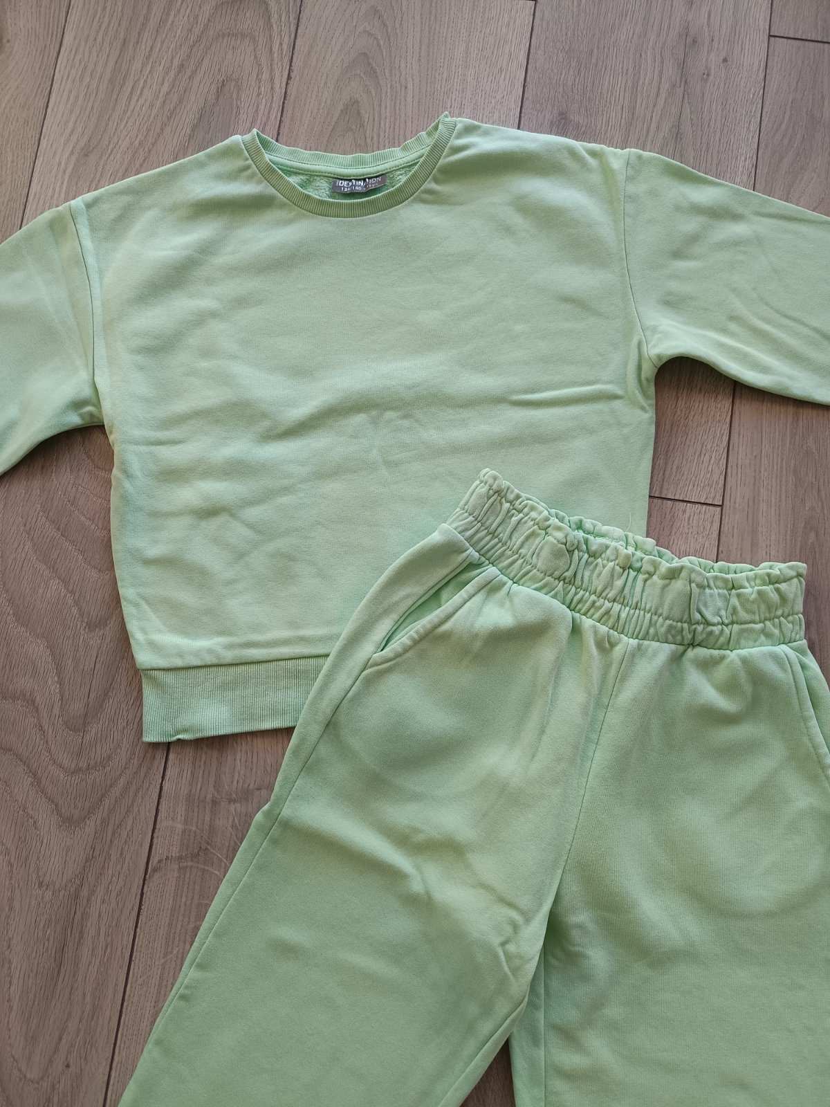 Mäkučká súprava, príjemná na dotyk. V bezchybnom stave. Na mikine písané dvojčíslo 134/140.