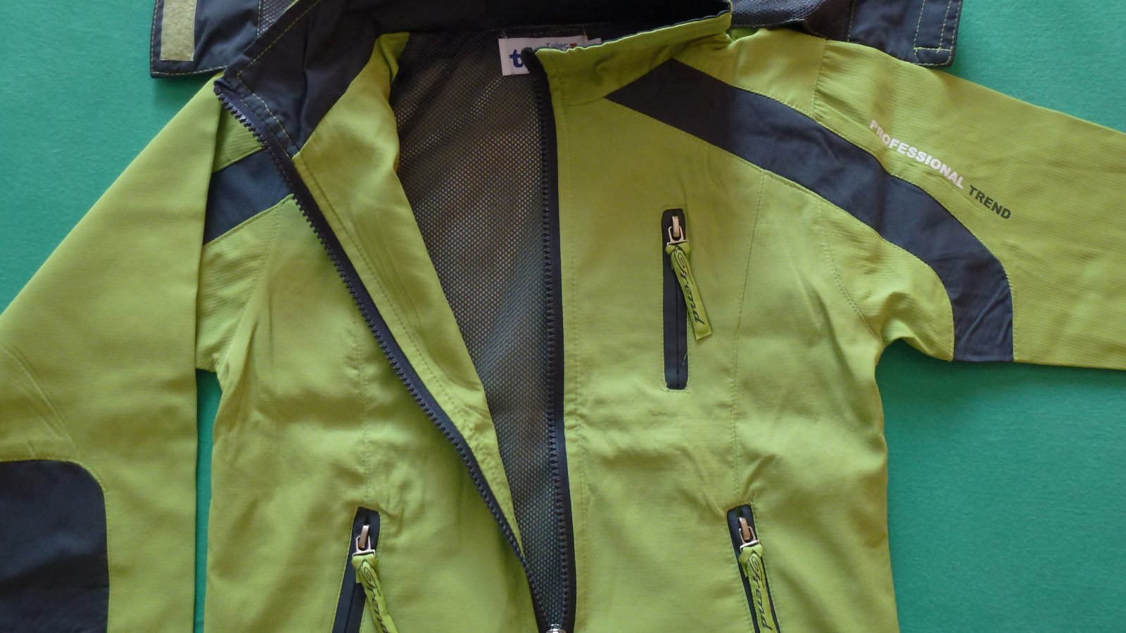 parádny komplet - bunda bledozelená a nohavice šedé - nosené, ale v peknom stave ...