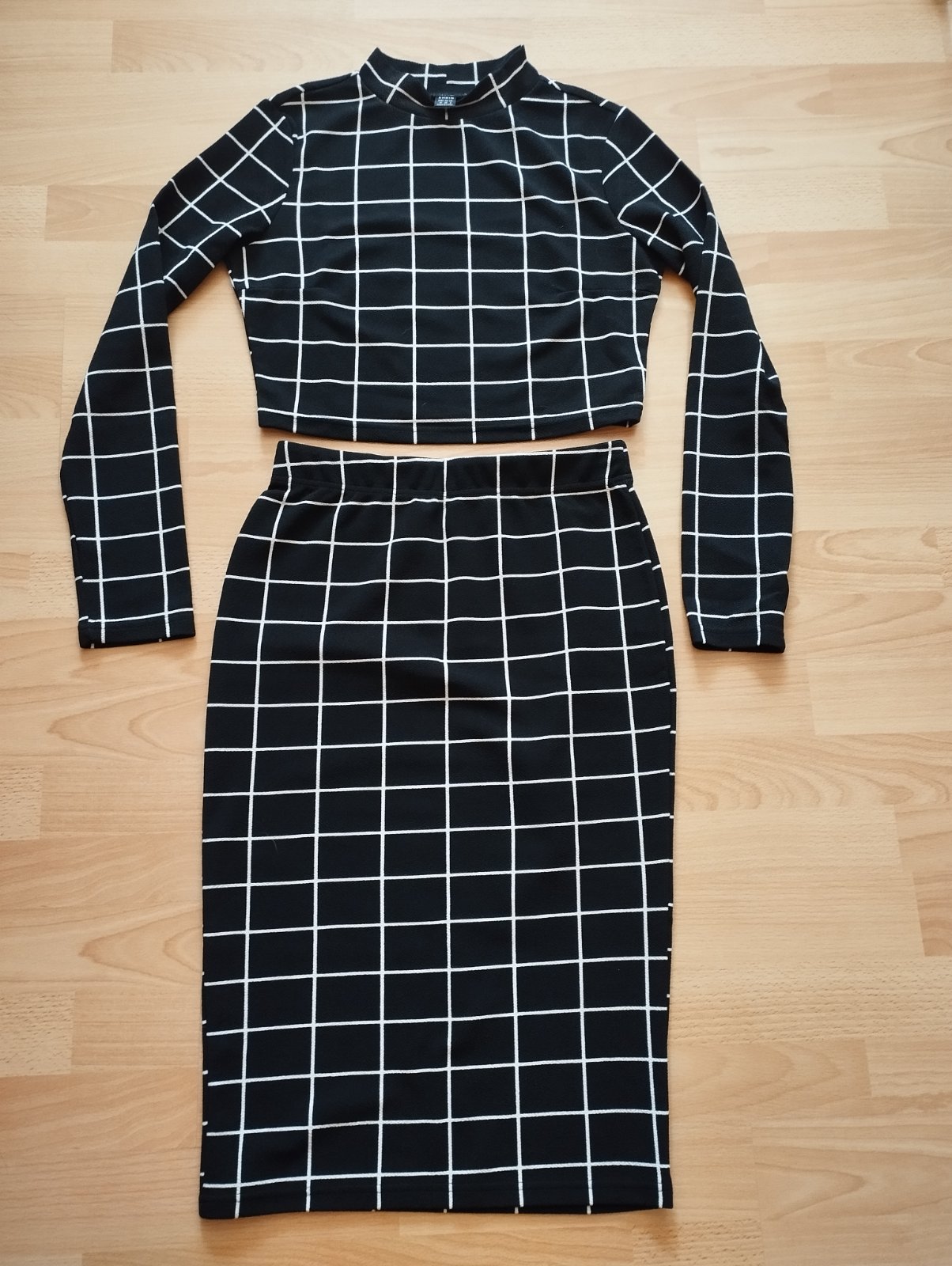 Top nenosený, iba odskúšaný. Sukňa pár krát oblečená. Dĺžka topu 41cm, šírka cez prsia 43x2cm, dĺžka sukne 65cm, šírka v páse 34x2cm. V páse je guma.