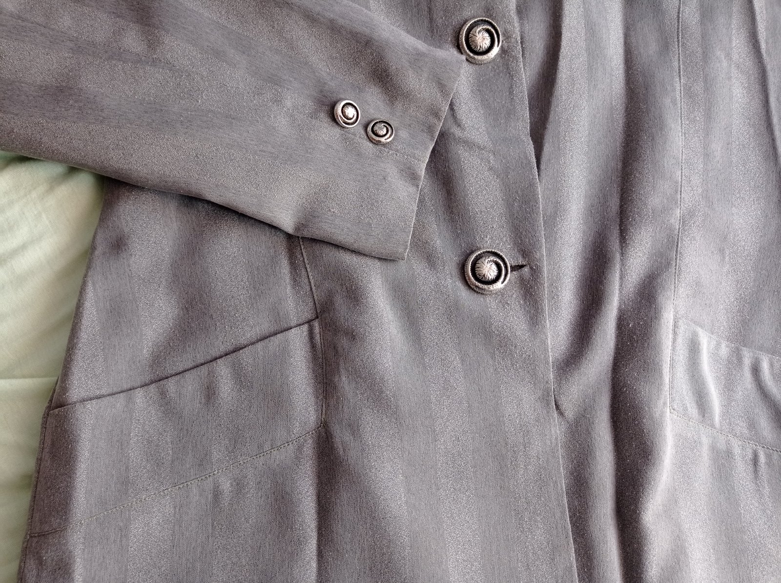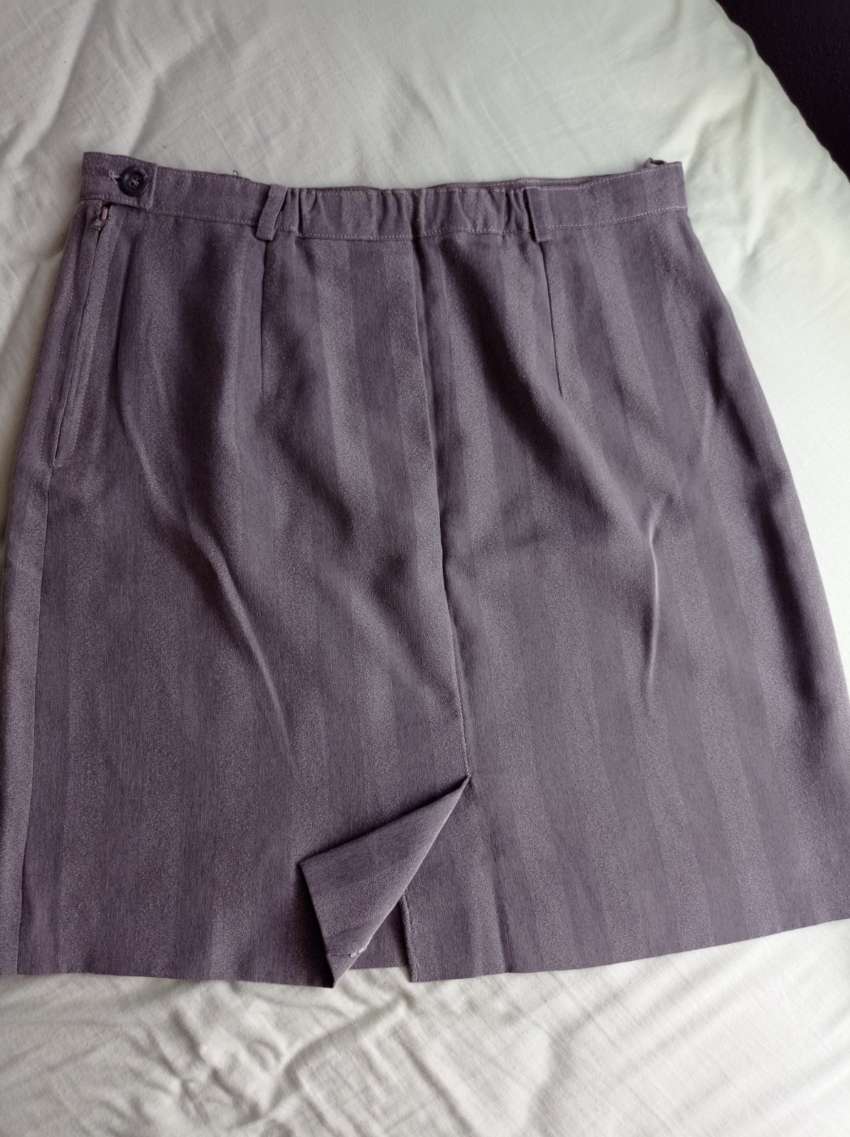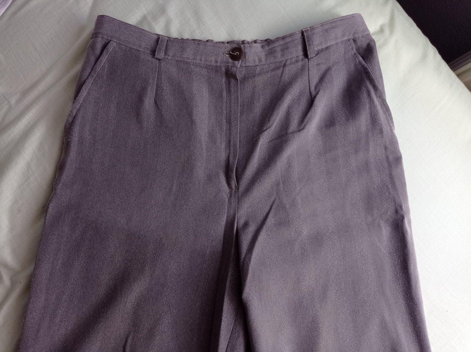 Predám tento trojkusový kostým veľkosti +- 42, v super stave, len pokrčený popri sťahovaní sa. Sako je s podšívkou a hlbokými vačkami, meria 81cm na dĺžku, 54cm na šírku v oblasti podpazušia, rukávy 46cm od podpazušia a 64cm od ramena. Sukňa je 50cm dlhá, pás +-41cm, v malej časti je v páse guma, ale treba ju tam novú - viz foto. Nohavice sú dlhé 112cm, pás +- 42cm, opäť sčasti vzadu je na gumu, ktorú tam treba novú.