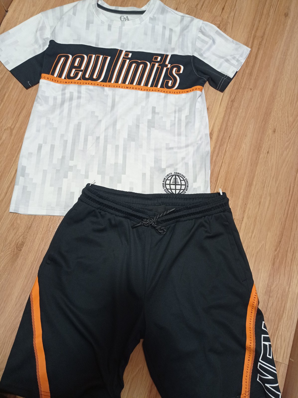 Sportova suprava, dobry noseny stav. Na 1 rukave sa zacala parat nitka. Dlzka tricka:61 cm, sirka:46,5, sortky dlzka:49 cm.