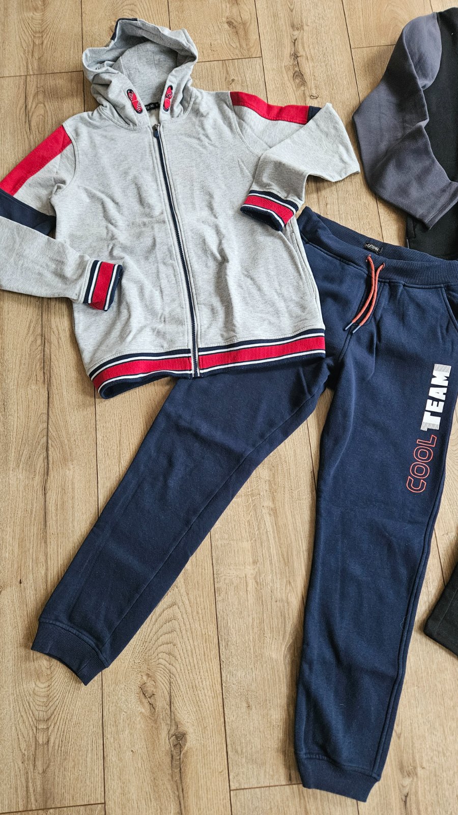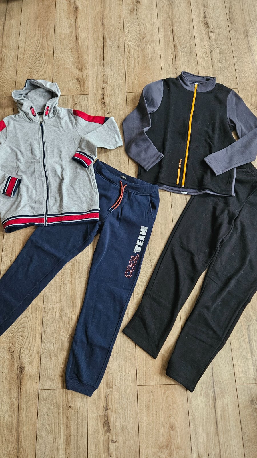 Predám teplákové súpravy v super stave, bez chýb. Šedo/modrá nosená kráto iba na telesnej, čierno/sivá skoro nová asi 2-3x oblečená.