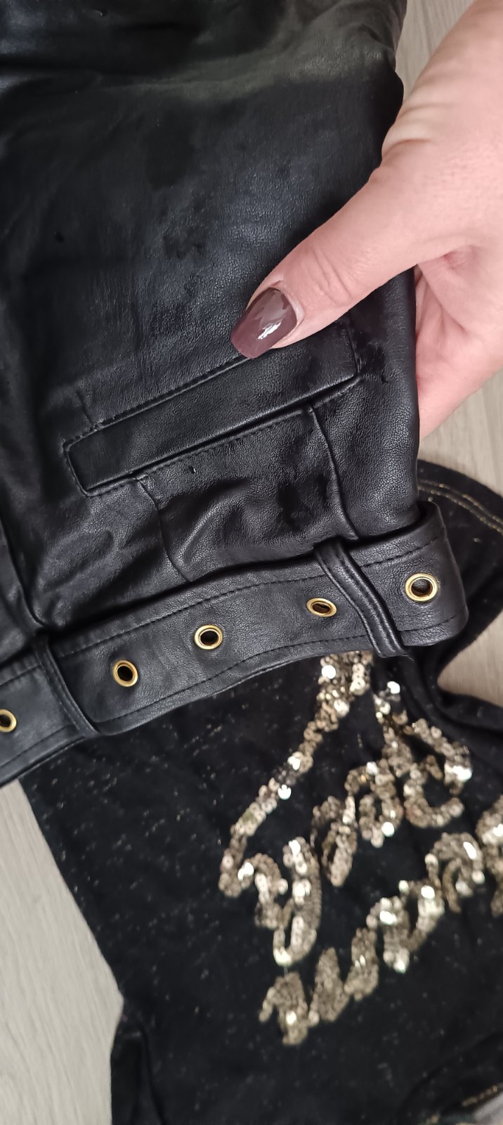 Koženkové kraťasy + tričko s flitrami