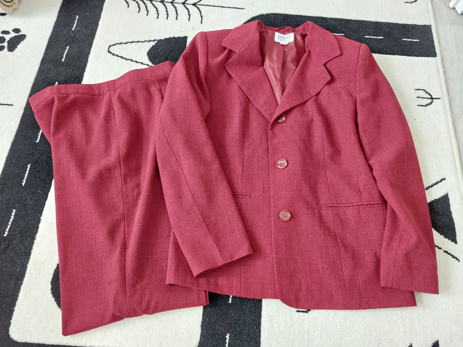 Dvojdielny malo noseny kostym,sukna a nohavice 44, sako velkost 42. Farba je tmavsia ešte,ako foto nohavic.