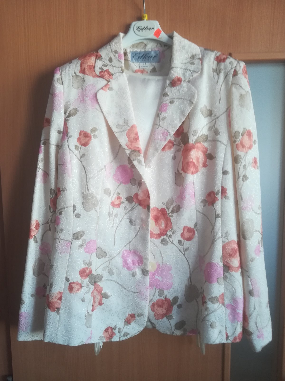 Sako štrukturovaná lesklá látka s potlačou ruží,