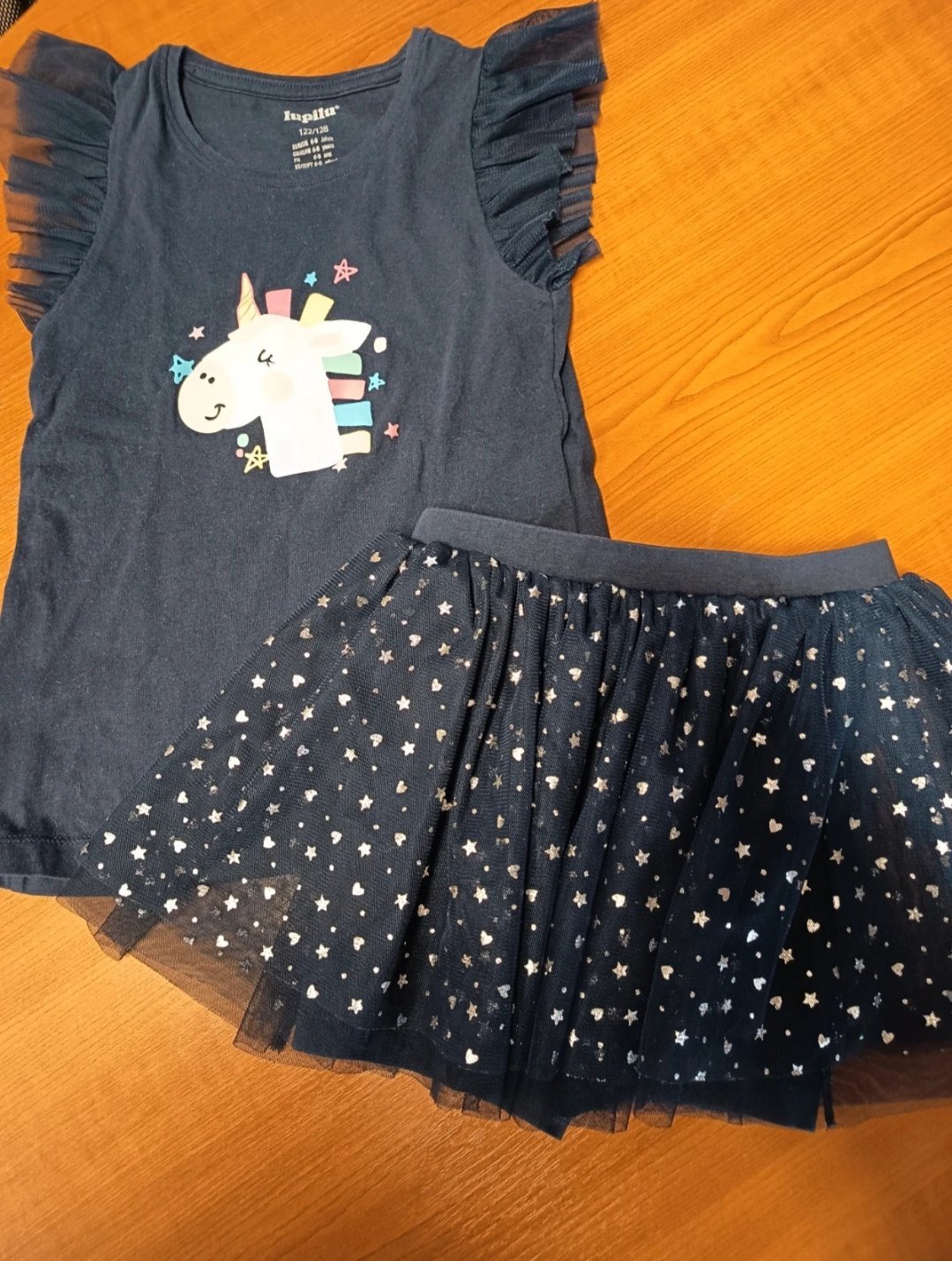 Tmavomodrá letná bavlnená súprava 122/128 na 6-7 rokov.