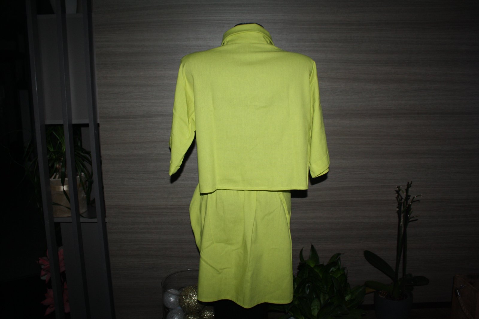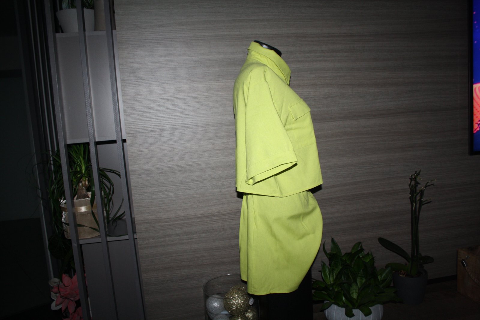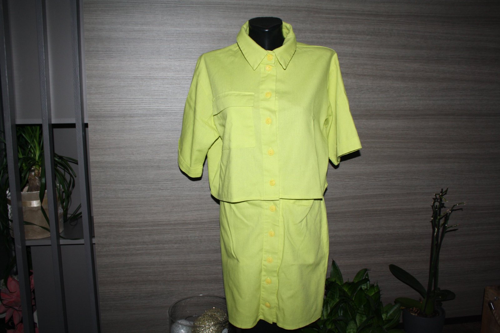 Pekny minim.noseny letny kostym, takej zlto-zelenej farby,,, vel.S, - rozmery na foto