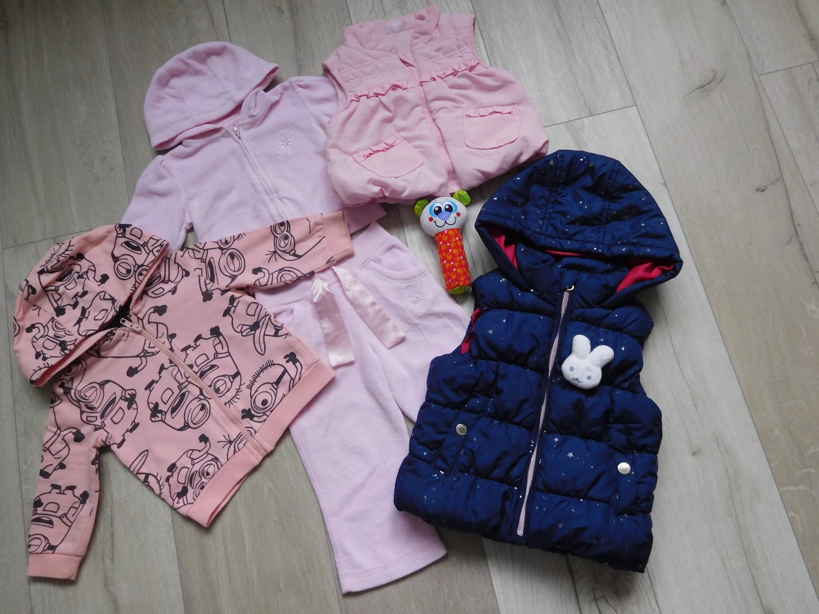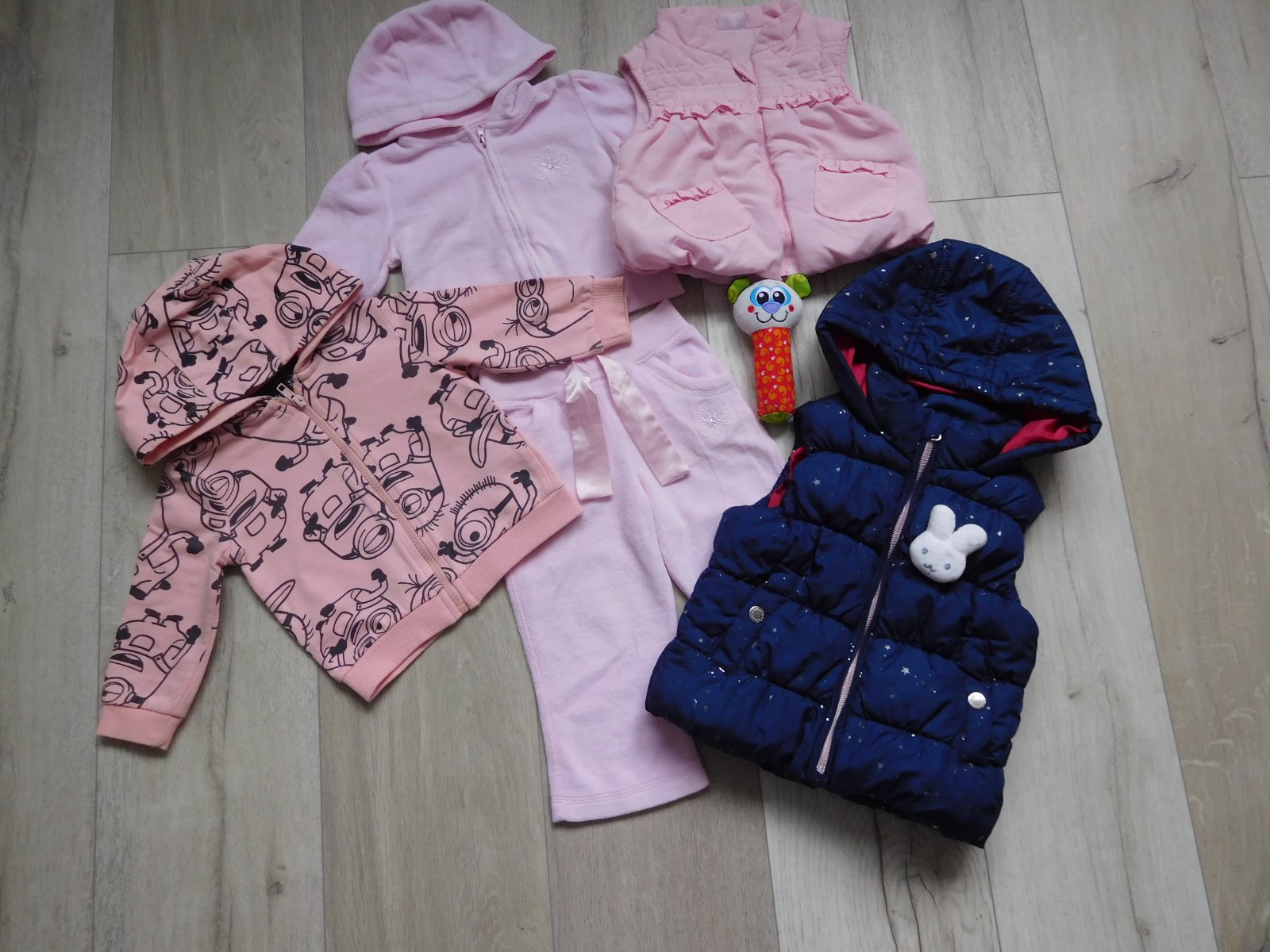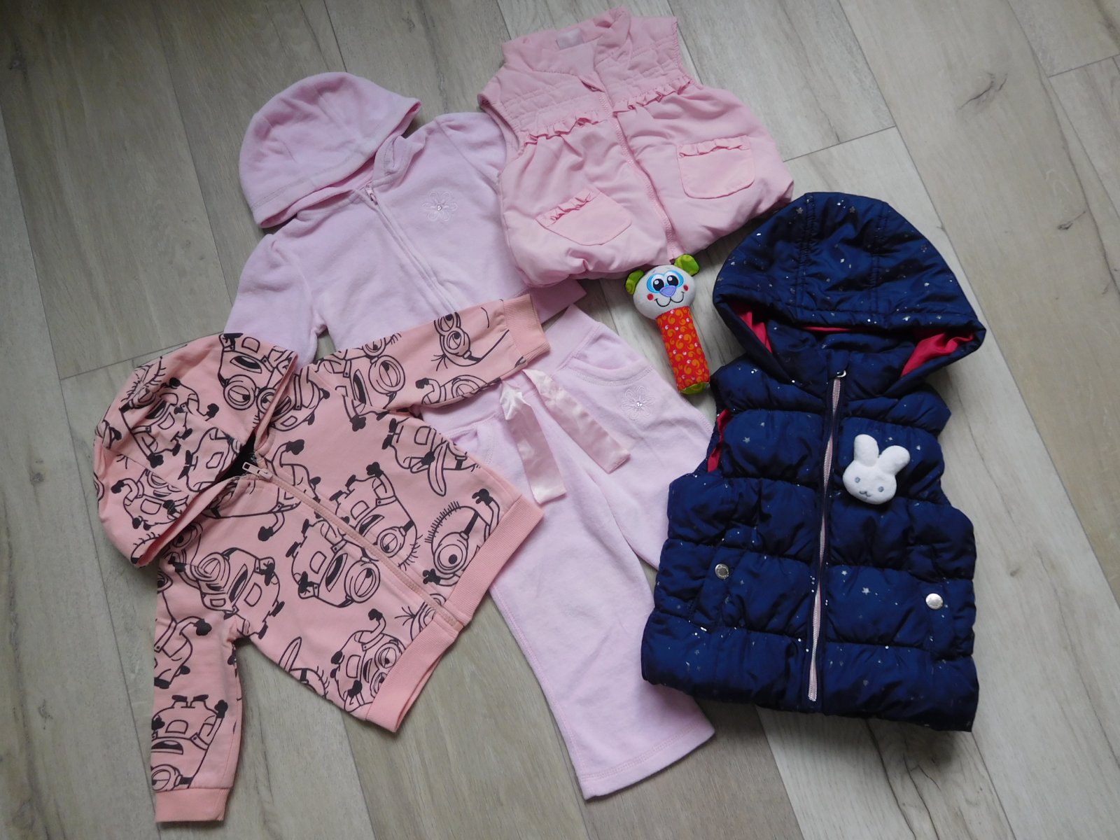 Ponúkam na predaj vi´d foto, vesty +ubor bavlnený pre malú slečnu, na 6/9 mesiacov, vecie sú nepoškodené,