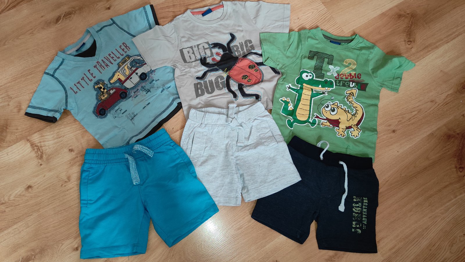 Ponúkam na predaj pekne veci pre chlapca. Nosené ale neznicene, bez poškodení, nevyblednute. Tričká majú pekne aplikácie. Cena 12 eur.