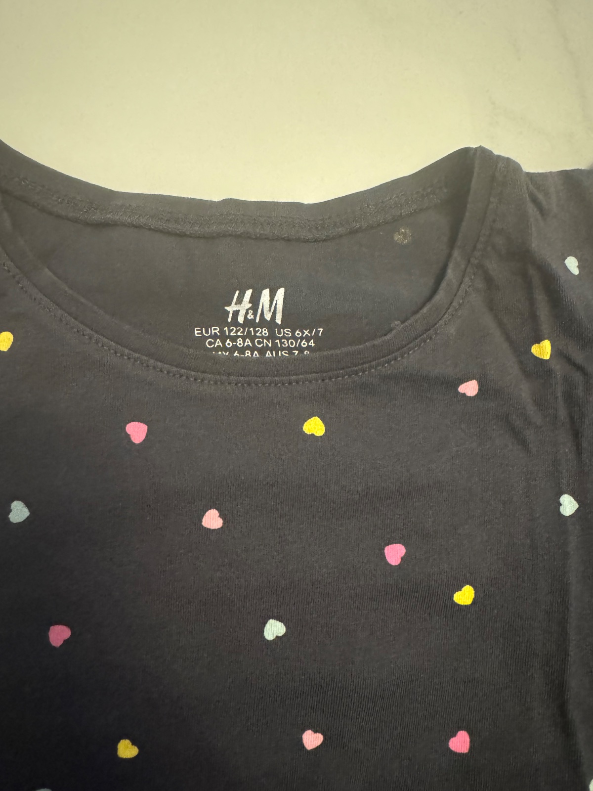 Predám dievčenskú súpravu H&M bo veľkosti 122. Nosené dcérkou. Čierna farba+ farebné srdiečka.